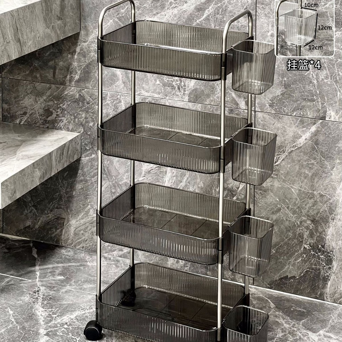 • [물결무늬 반투명 그레이] 특대형 4단 + 행잉바구니