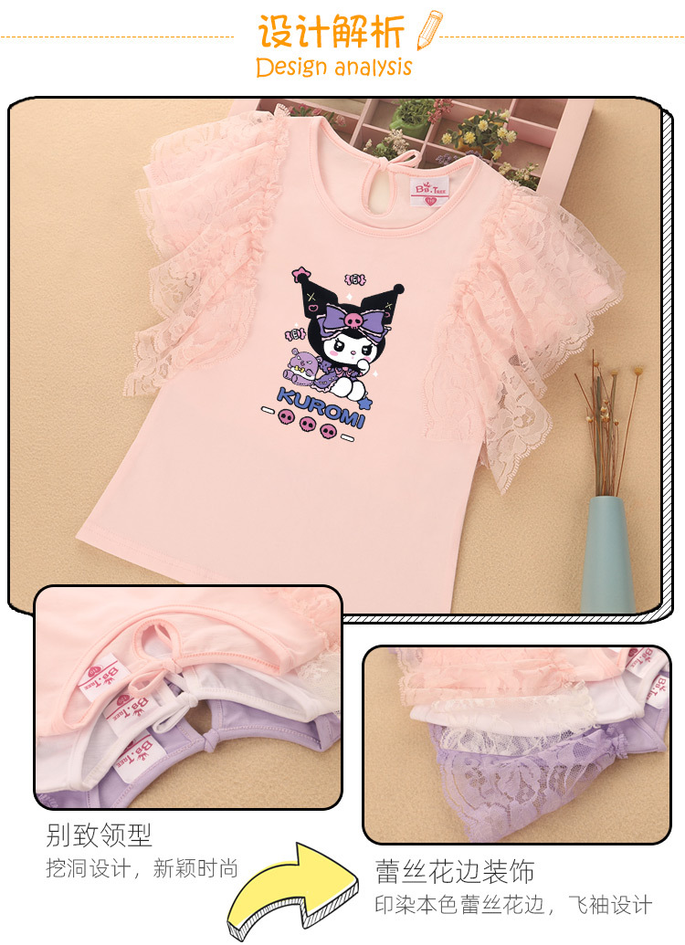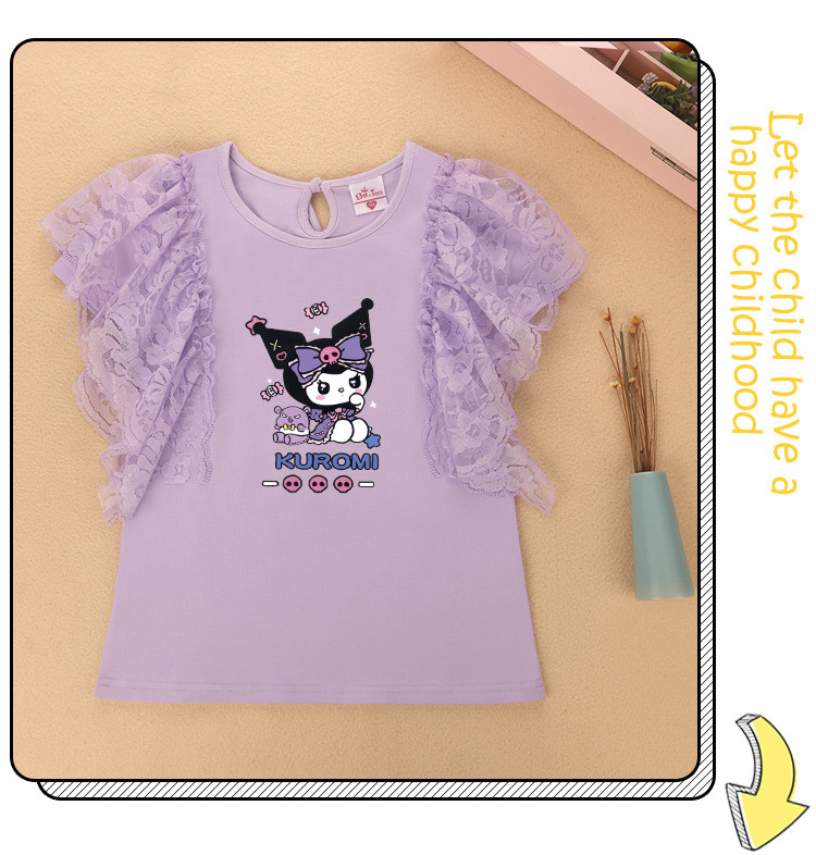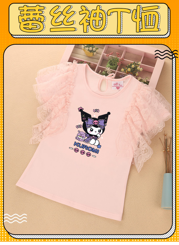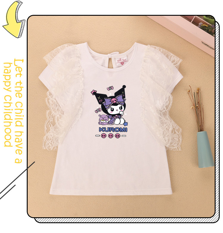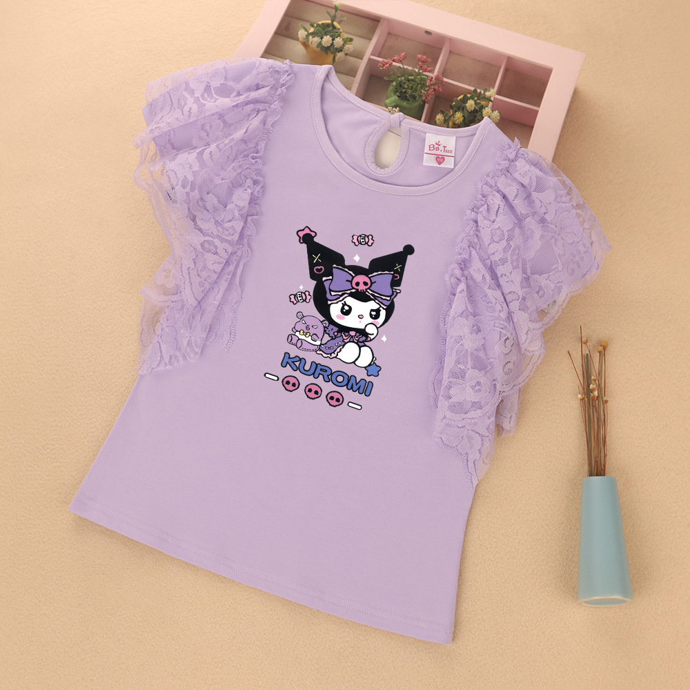Kulomi 아동복 소녀의 여름 반팔 티셔츠 2024 새로운 어린이 여름 착용 아기 소녀의 T 카드 인쇄 탑