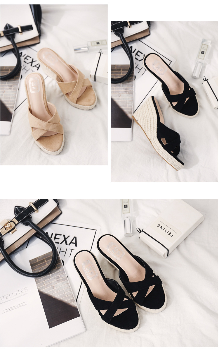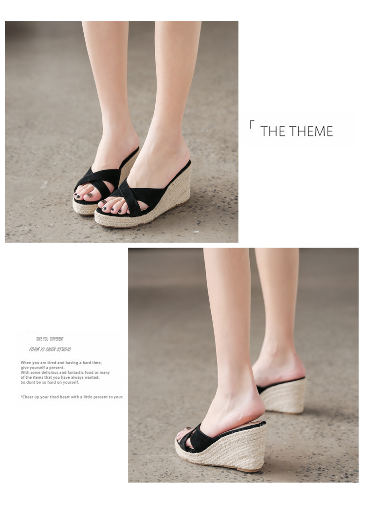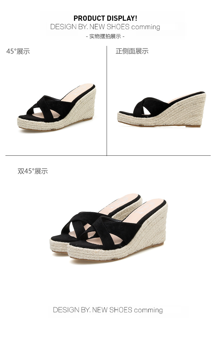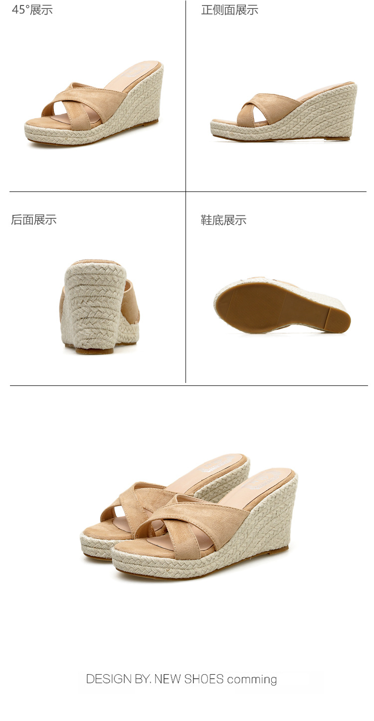 밀짚 웨지 샌들 여성 여름 2024 대외 무역 플랫폼 두꺼운 바닥 플립 플롭 유행 캐주얼 크로스 슬리퍼