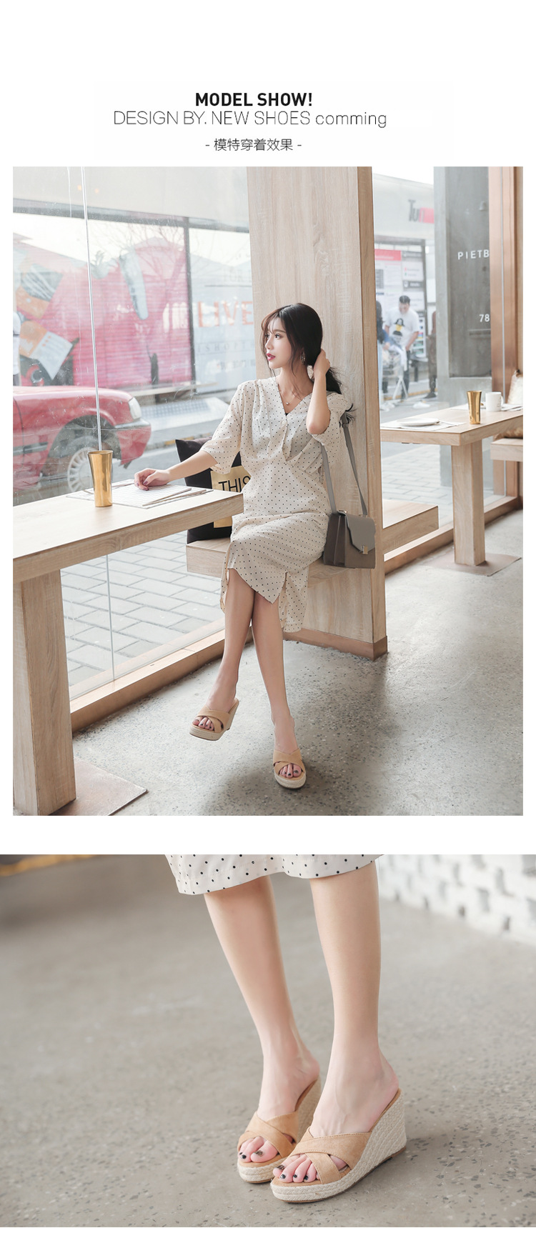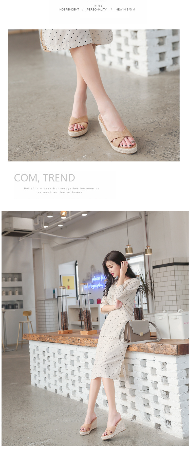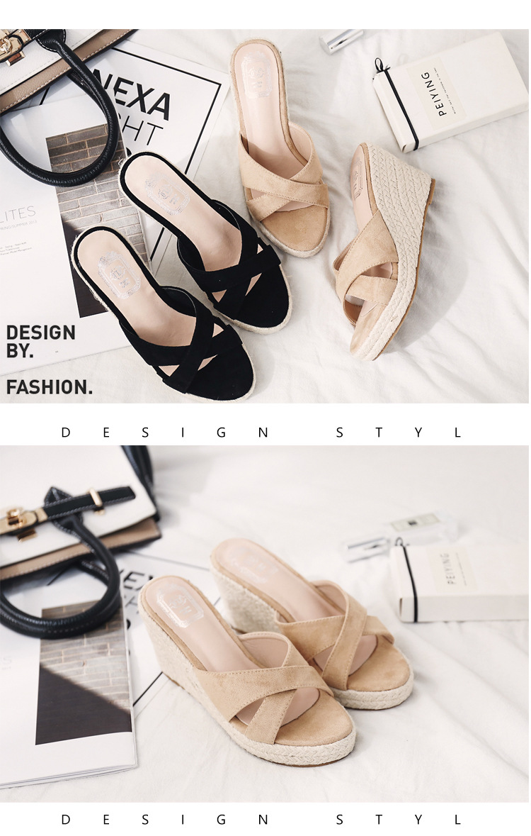 밀짚 웨지 샌들 여성 여름 2024 대외 무역 플랫폼 두꺼운 바닥 플립 플롭 유행 캐주얼 크로스 슬리퍼스토어 가기