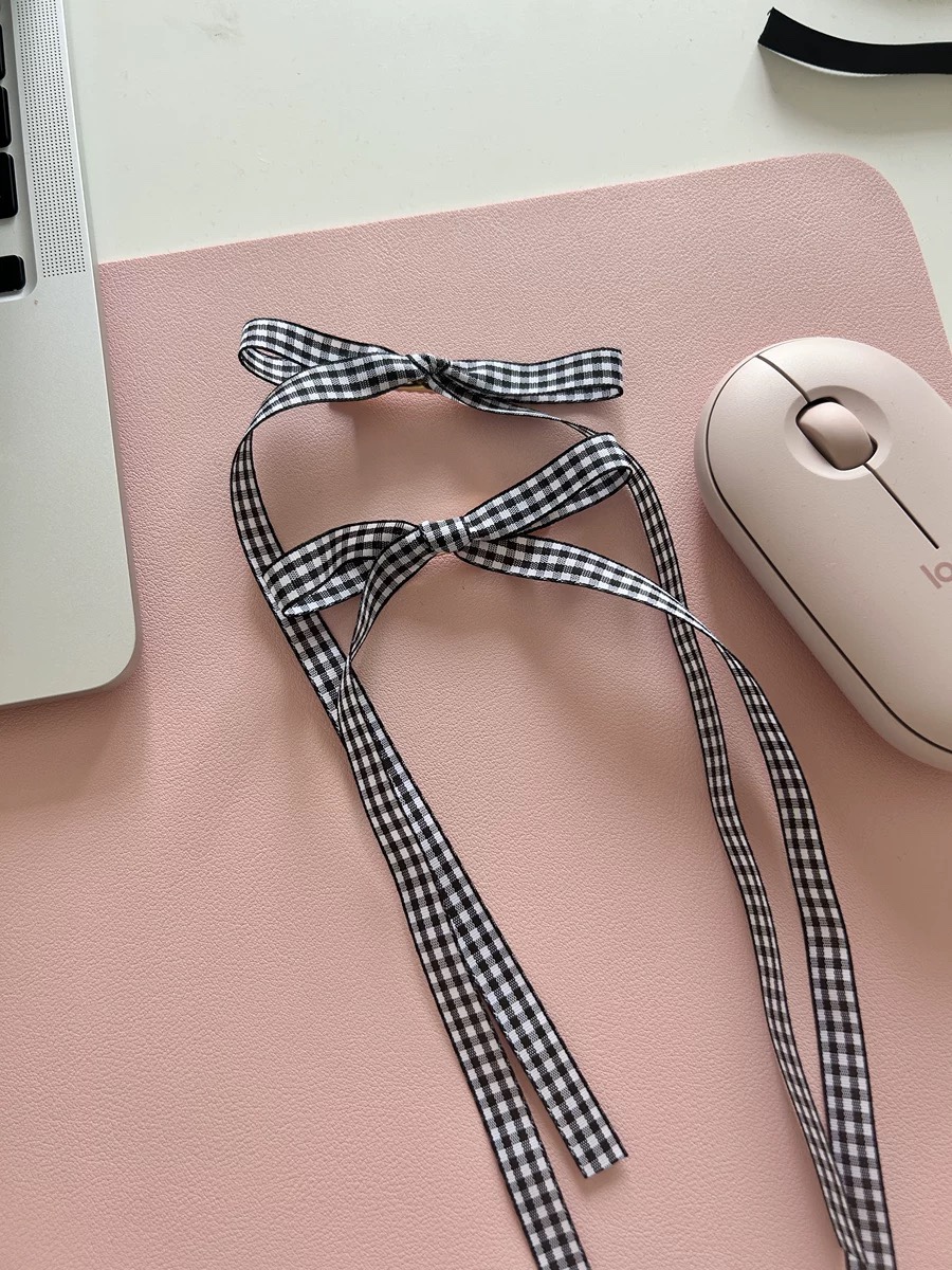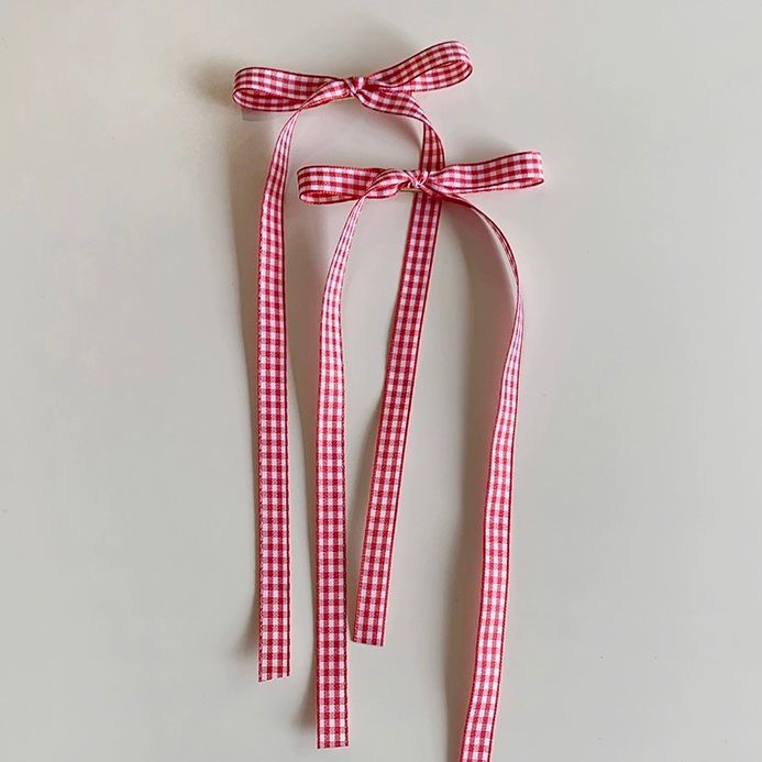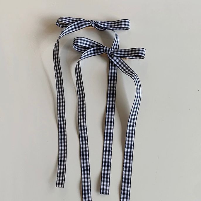 여성용 여성용 발레 스타일 체크 무늬 리본 활 머리핀 리본 넥타이 헤어 밴드 더블 포니 테일 헤어핀 헤드웨어 헤어 액세서리