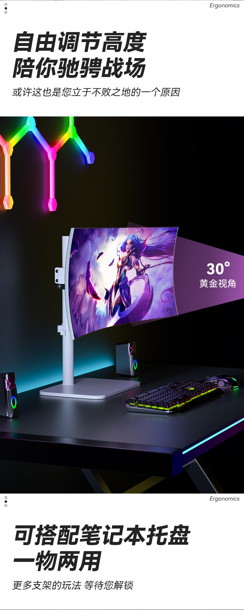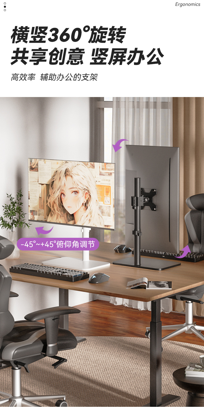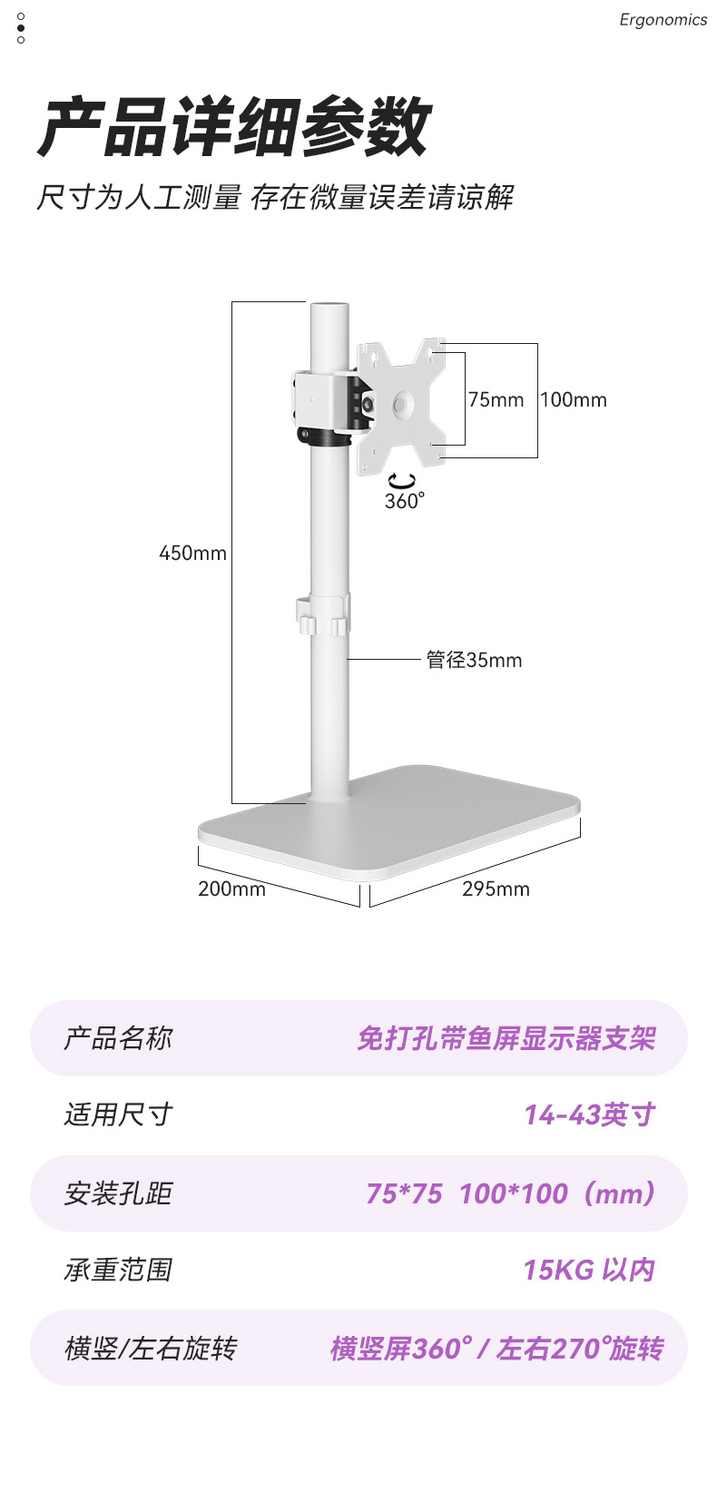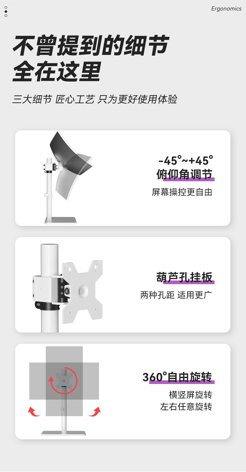 34/38/43 인치 컴퓨터베이스 천공되지 않은 높이 증가 회전 데스크탑 리프팅 대형 하중지지 모니터 브래킷