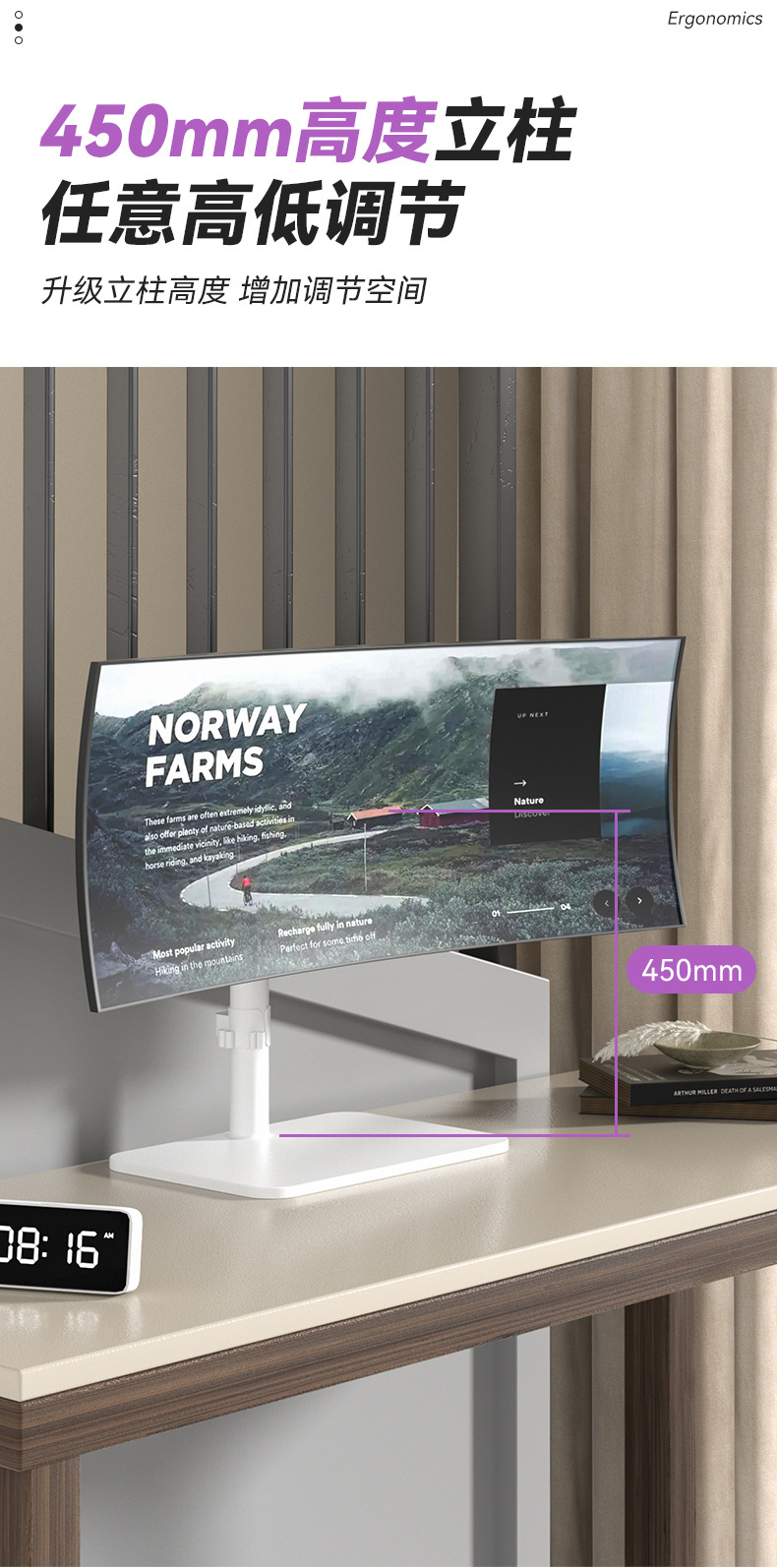 34/38/43 인치 컴퓨터베이스 천공되지 않은 높이 증가 회전 데스크탑 리프팅 대형 하중지지 모니터 브래킷스토어 가기