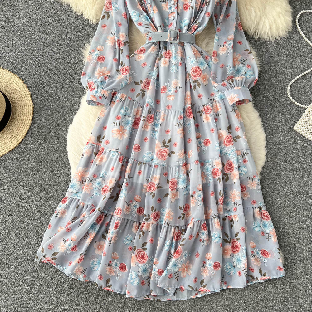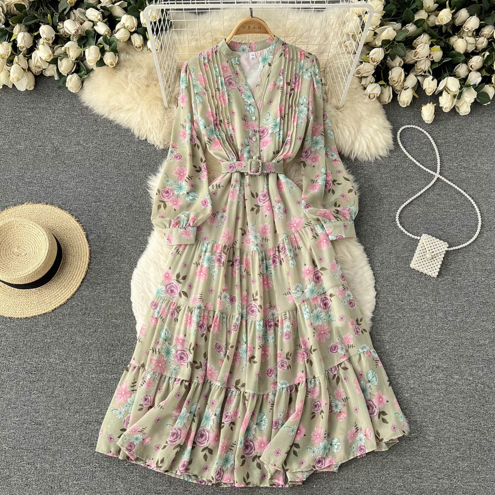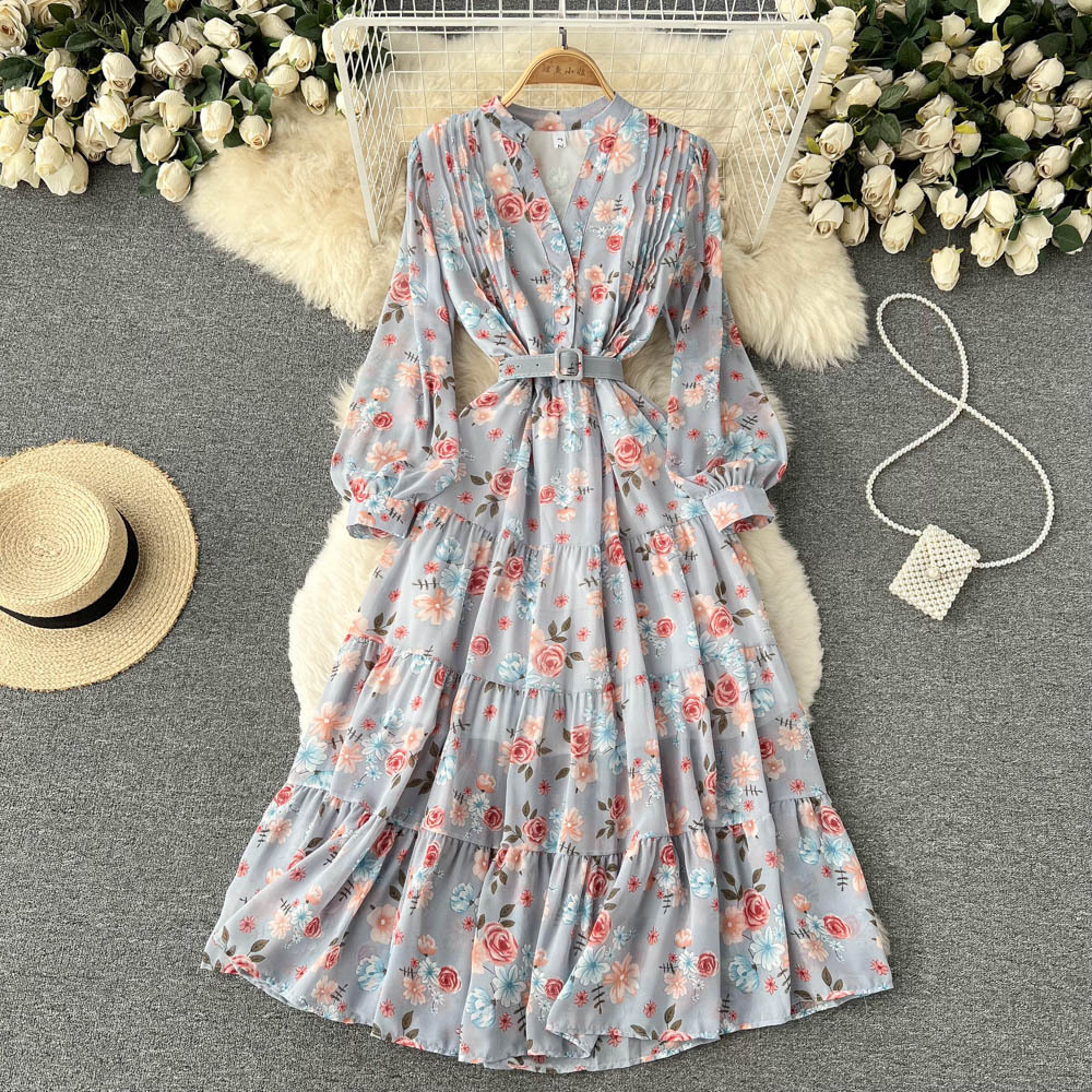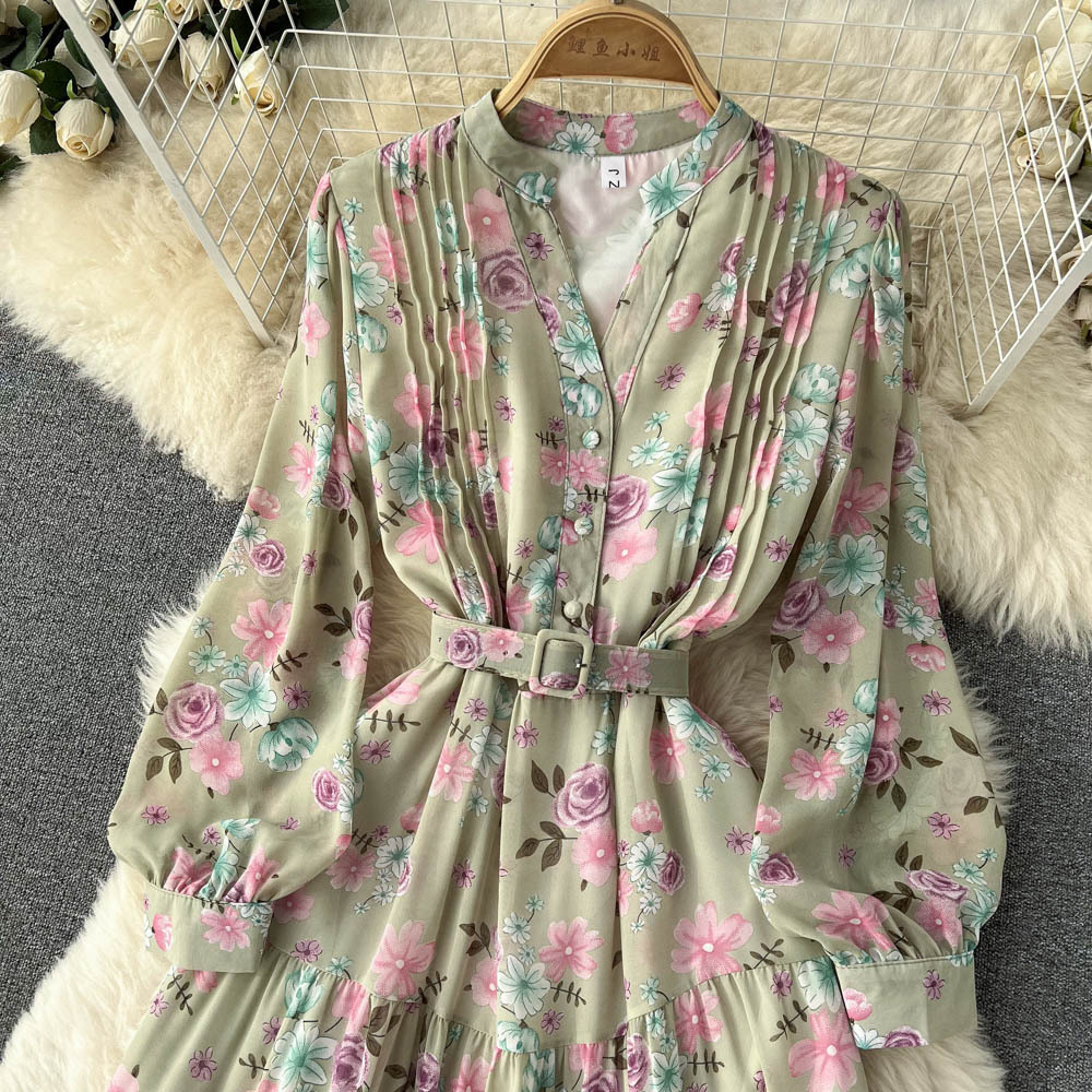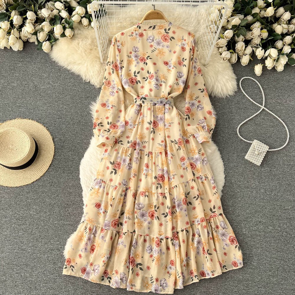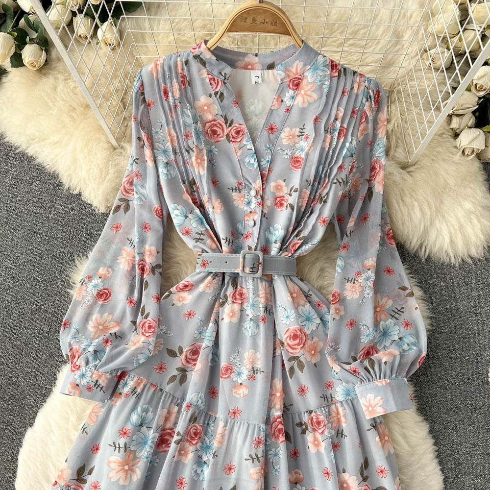 패션 V 넥 긴 소매 원피스 새로운 봄 쉬폰 꽃 원피스 여성의 슈퍼 요정 모리 달콤한 작은 신선한 요정스토어 가기