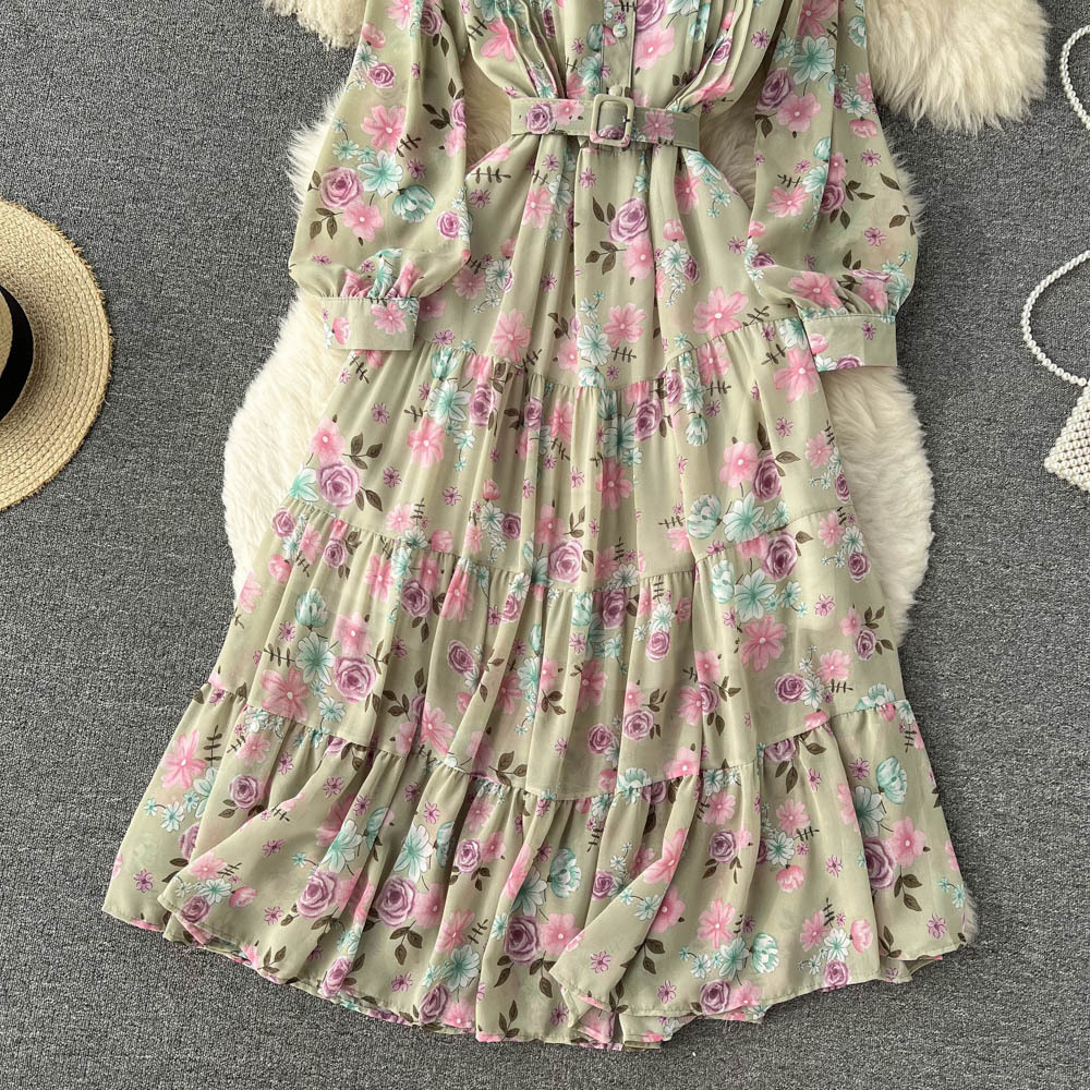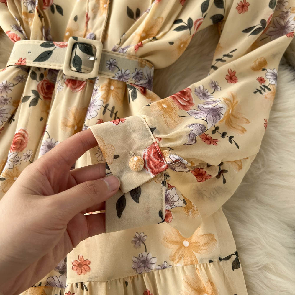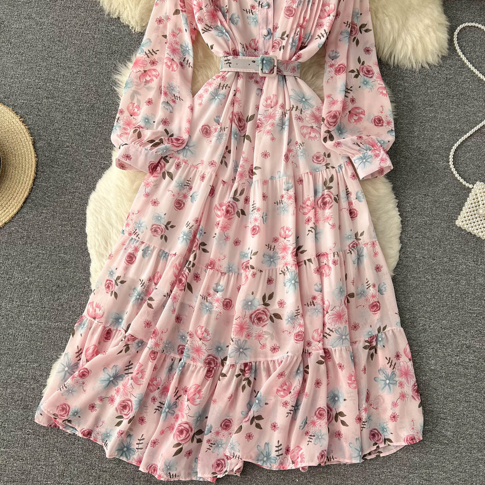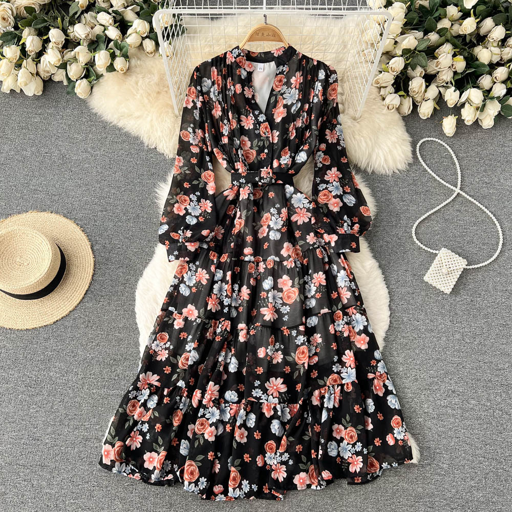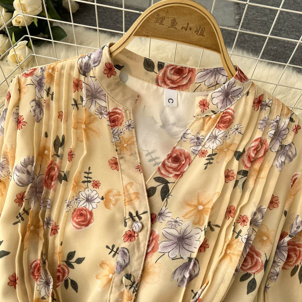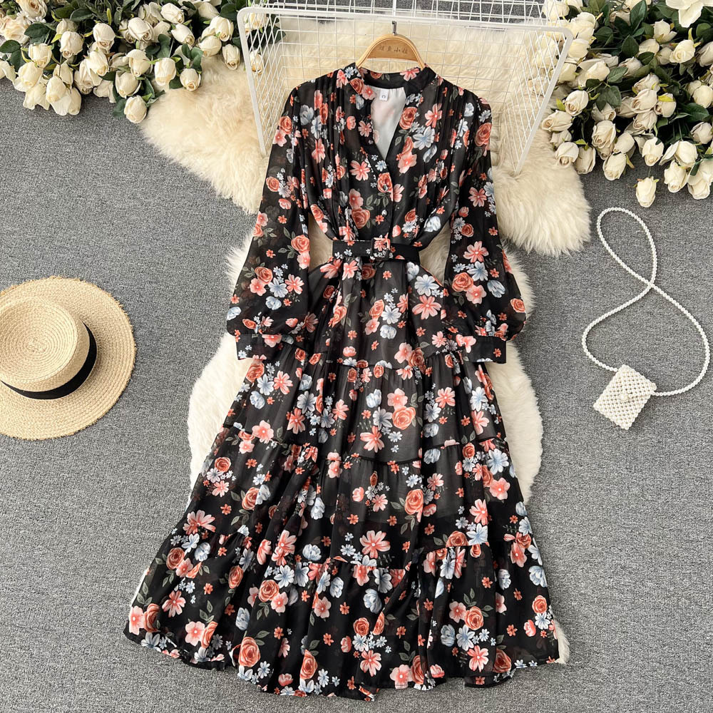 패션 V 넥 긴 소매 원피스 새로운 봄 쉬폰 꽃 원피스 여성의 슈퍼 요정 모리 달콤한 작은 신선한 요정스토어 가기