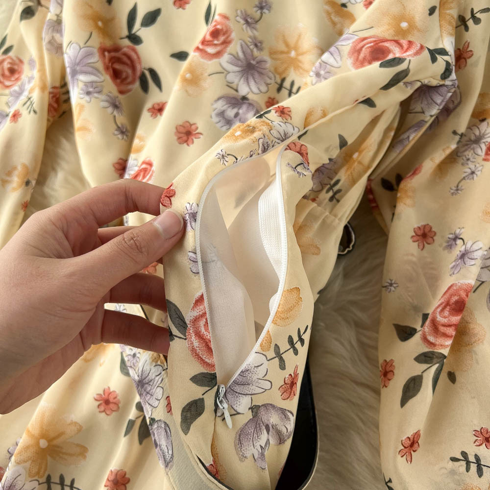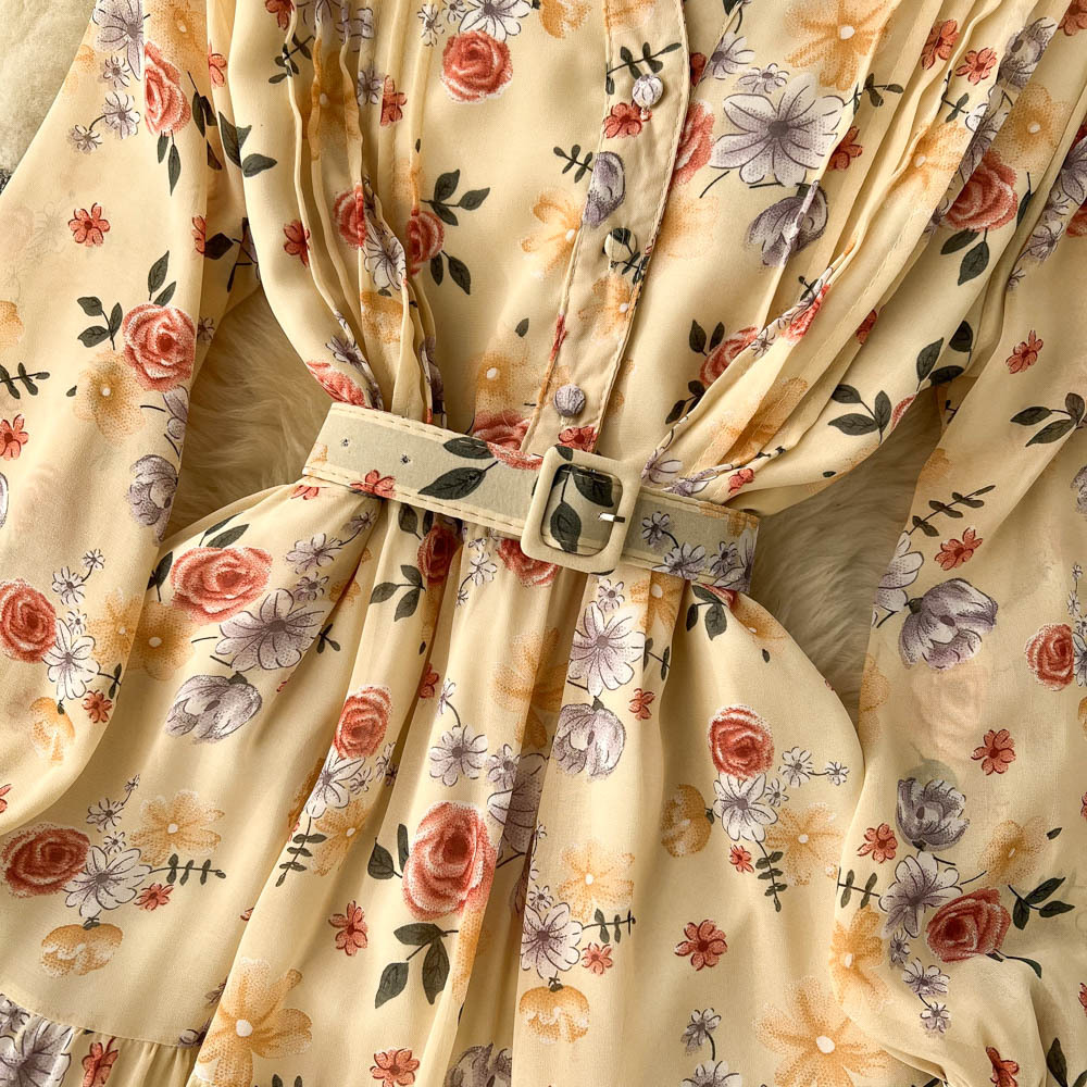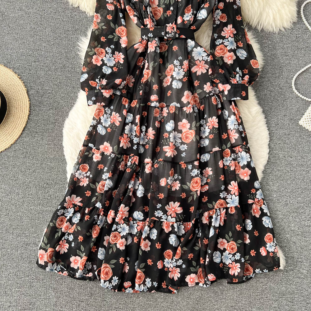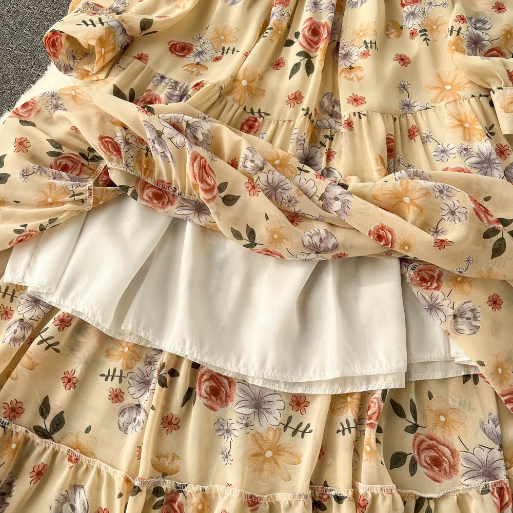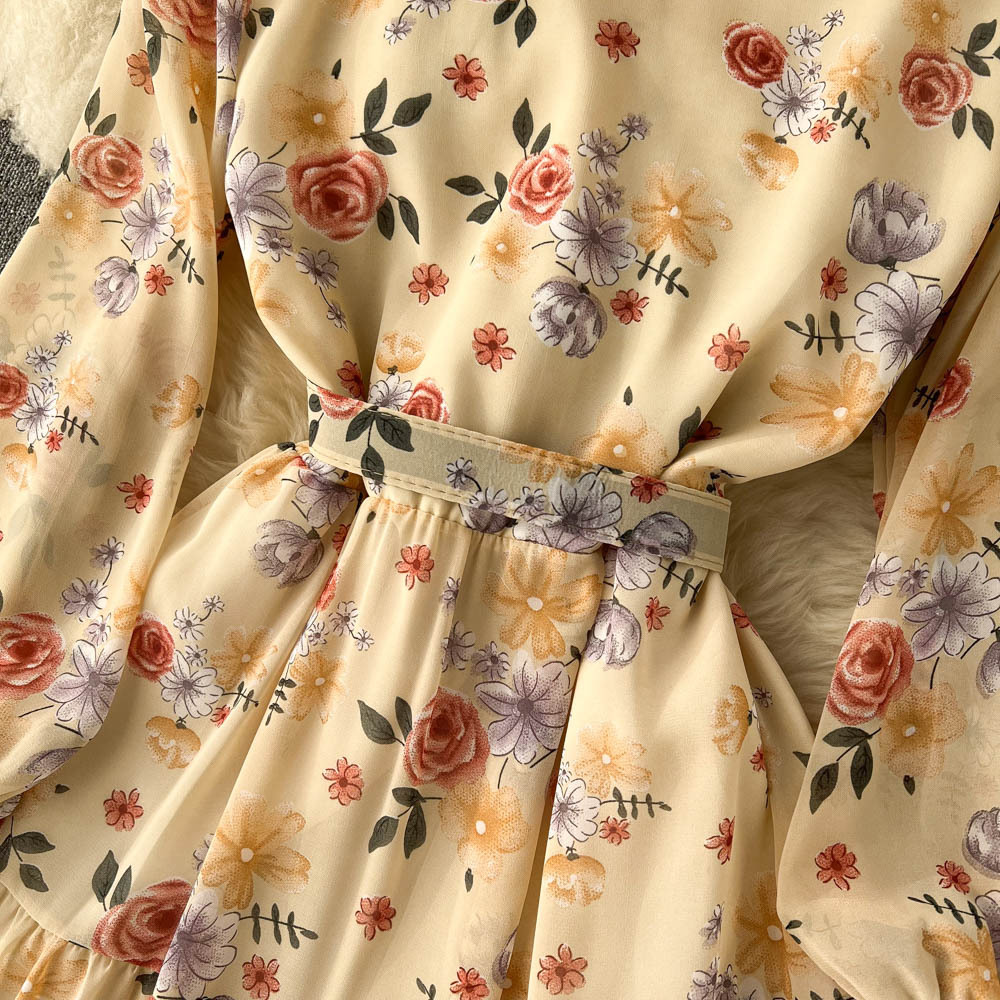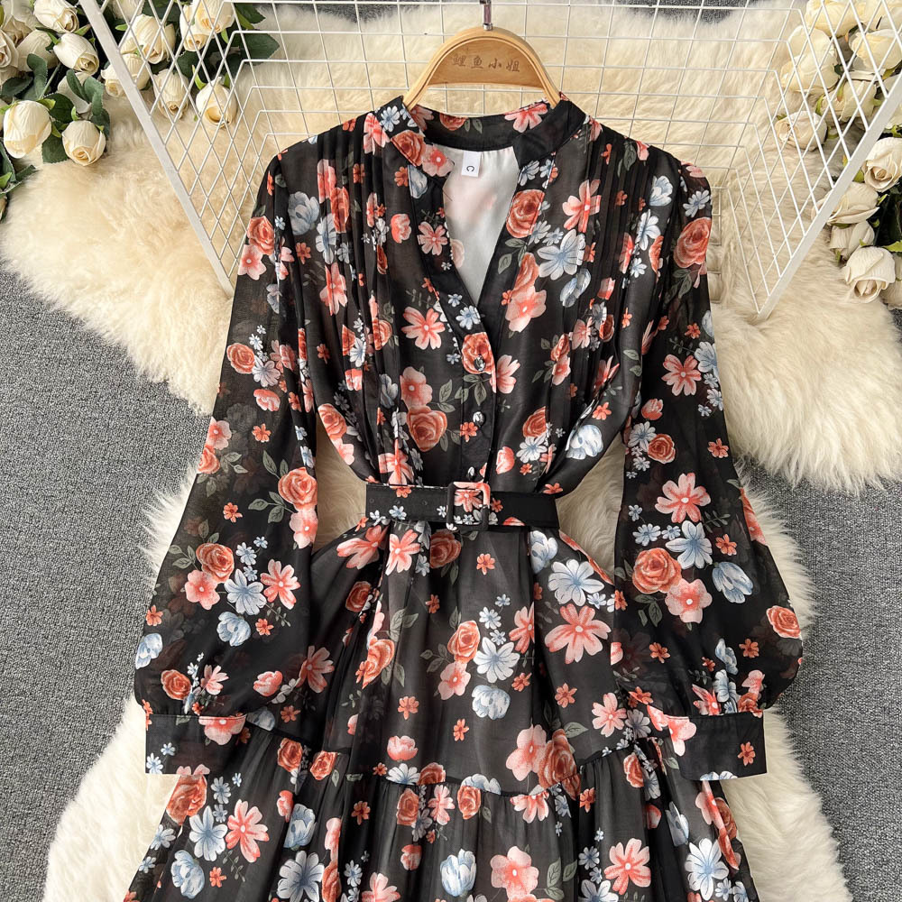 패션 V 넥 긴 소매 원피스 새로운 봄 쉬폰 꽃 원피스 여성의 슈퍼 요정 모리 달콤한 작은 신선한 요정스토어 가기