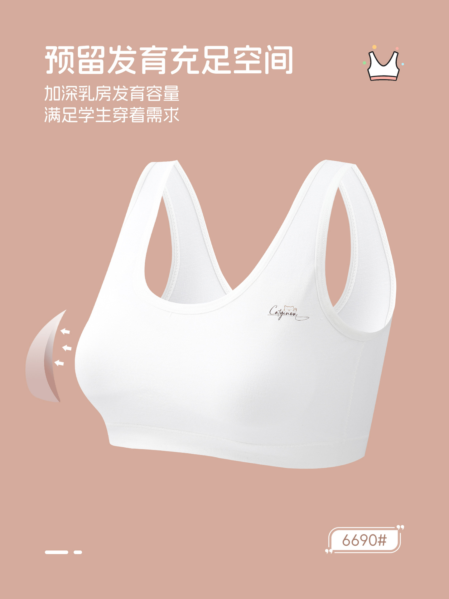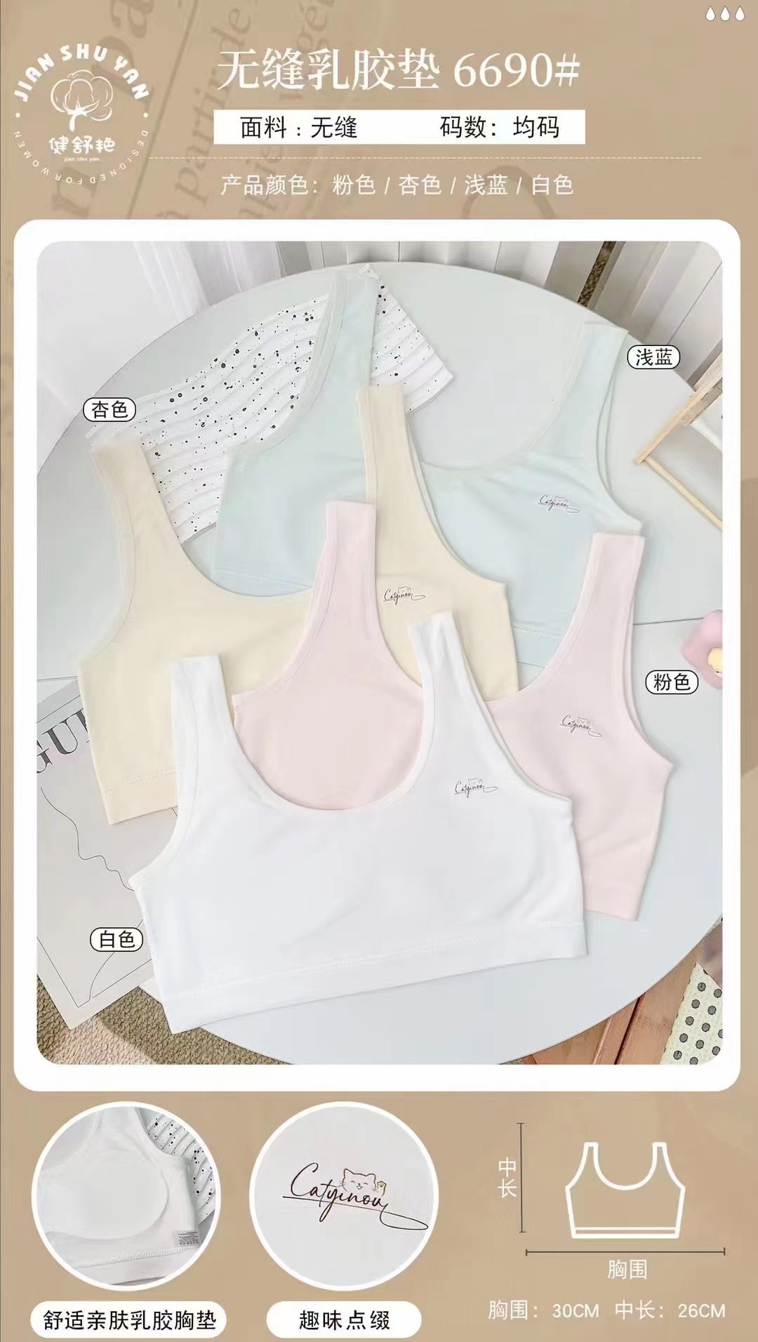 어린이 속옷 발달기 초등학생 편안하고 피부 친화적인 소녀용 라텍스 패드 스포츠 여학생 브라스토어 가기