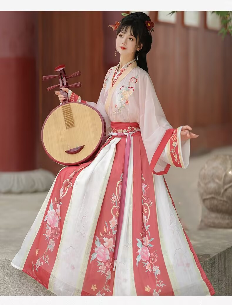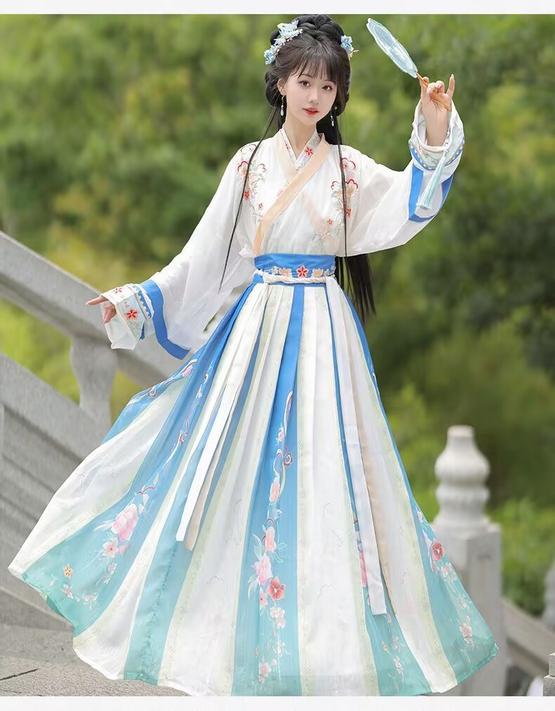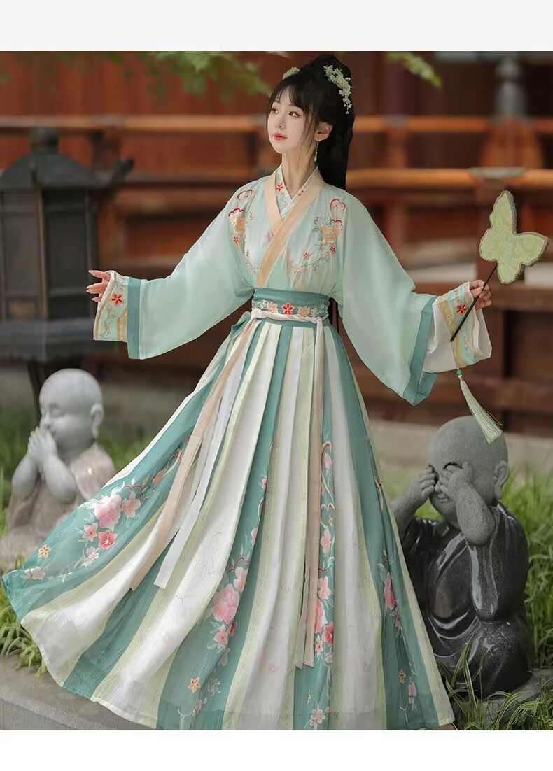 원래 Hanfu Huazhiling Wei와 Jin Dynasties Handover Coll칼라 허리 길이 스커트 자수 골동품 개선 고대 원피스 매일 2024 봄