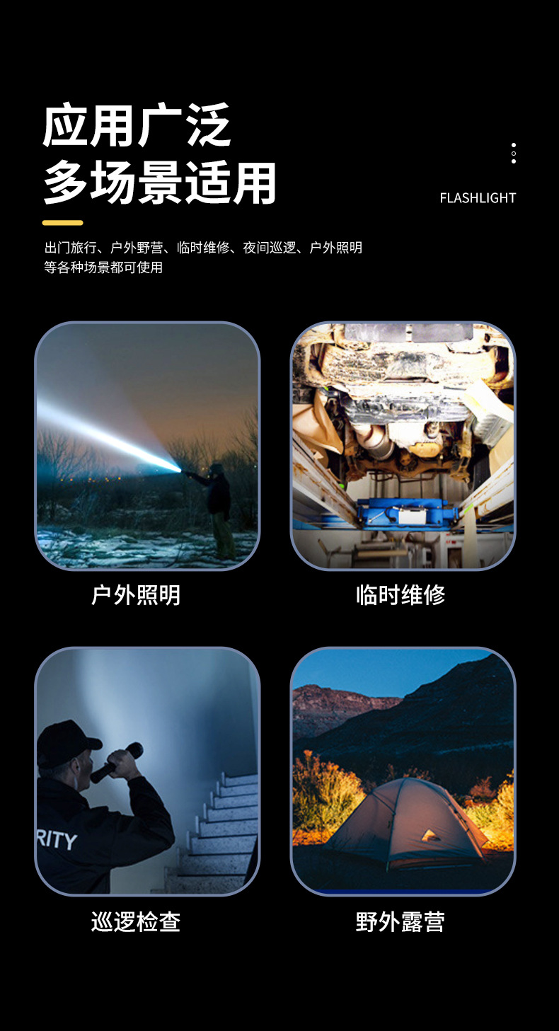 야외 손전등 강한 빛 레이저 총 장거리 다기능 슈퍼 밝은 줌 휴대용 긴 배터리 수명 USB 충전 비상스토어 가기