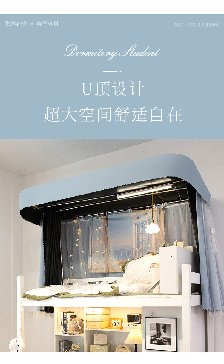 기숙사 강한 음영 상부 침대 U 자형 트랙 침대 커튼 학생 기숙사 상부 및 하부 침대 유니버설 모기장 통합 음영 커튼