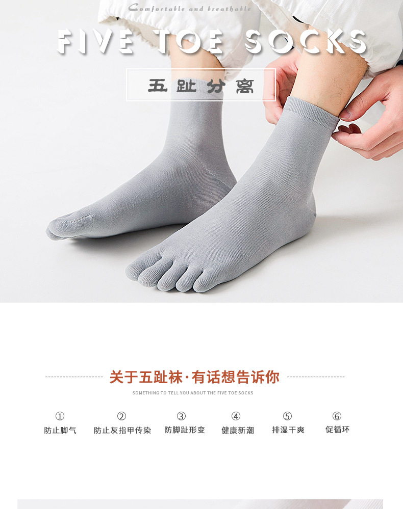 5 개의 손가락 남자 탈취제 땀 흡수 솔리드 컬러 코튼 양말 봄 및 여름 얇은 스포츠 스플릿 발가락 미드 튜브 발가락 스툴 양말