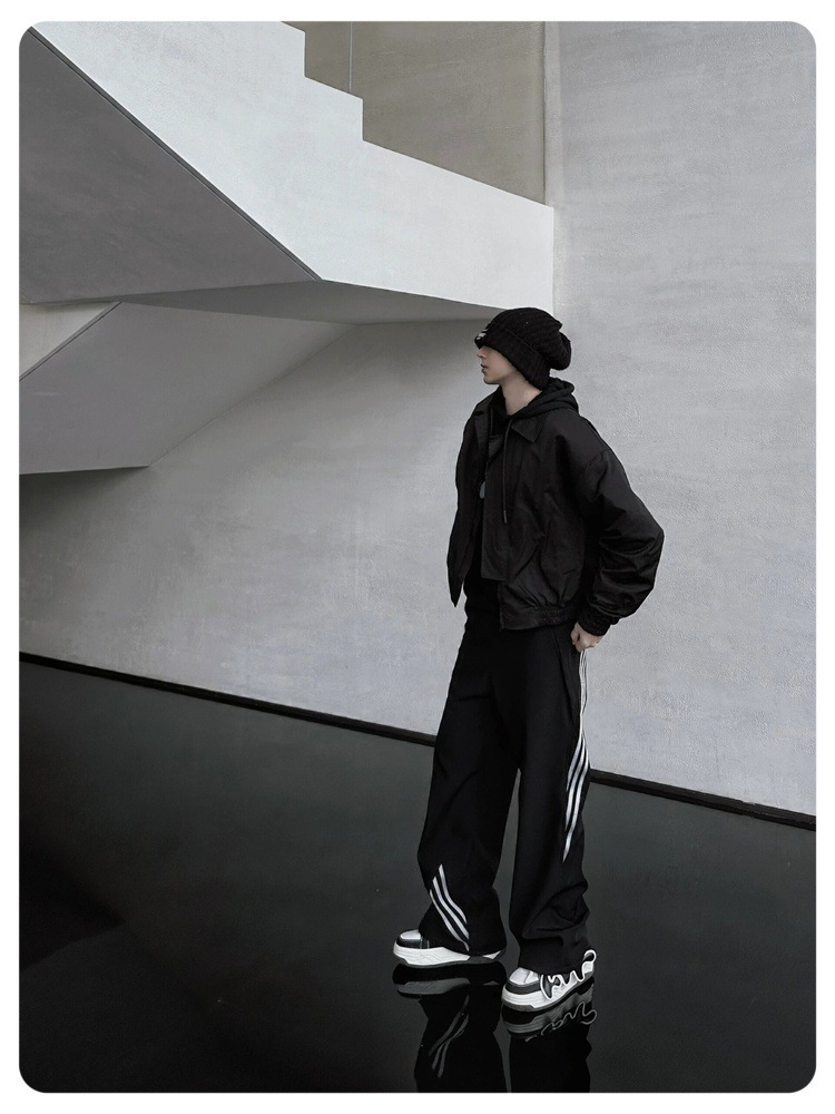 미국식 기능성 방수 러시 바지 남자 여름 줄무늬 바느질 바지 듀플렉스 잘 생긴 느슨한 다리 넓은 다리 캐주얼 바지스토어 가기