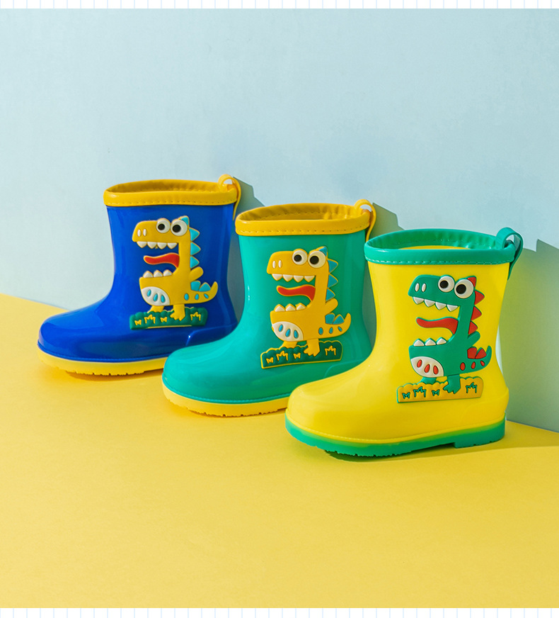 어린이 비 부츠 소년 소녀 공룡 장화 야외 방수 신발 경량 미끄럼 비 장화 유치원 머리 용 물 신발스토어 가기