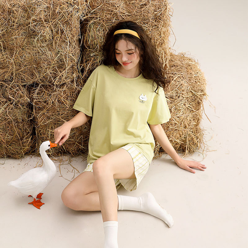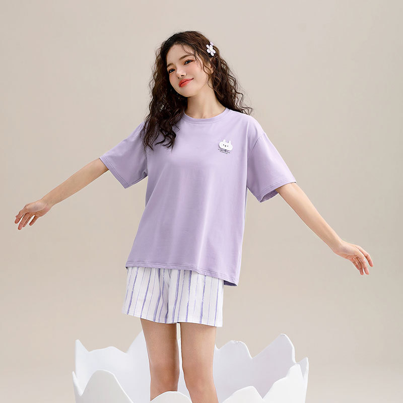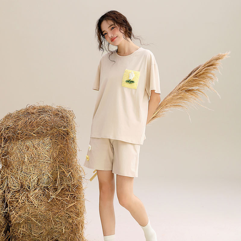 잠옷 여성 여름면 반팔 반바지 얇은 여름 2024 새로운 도착 복장 여름 캐주얼 홈 의류스토어 가기