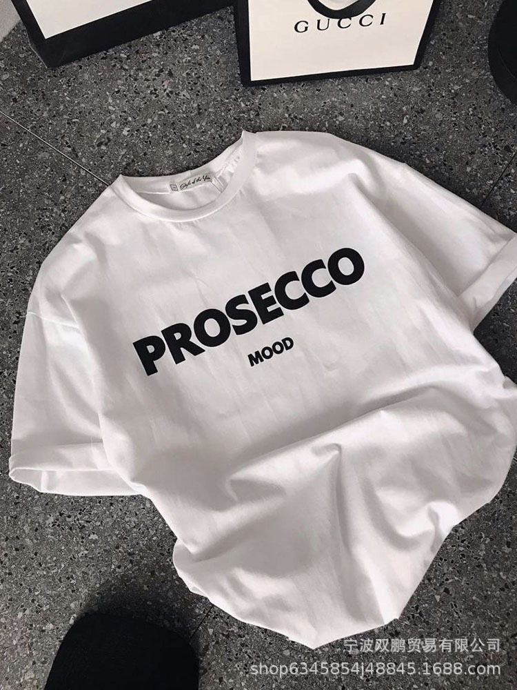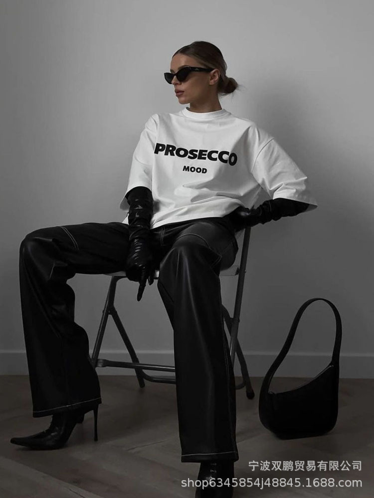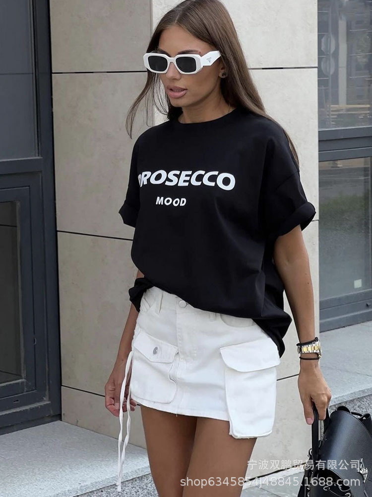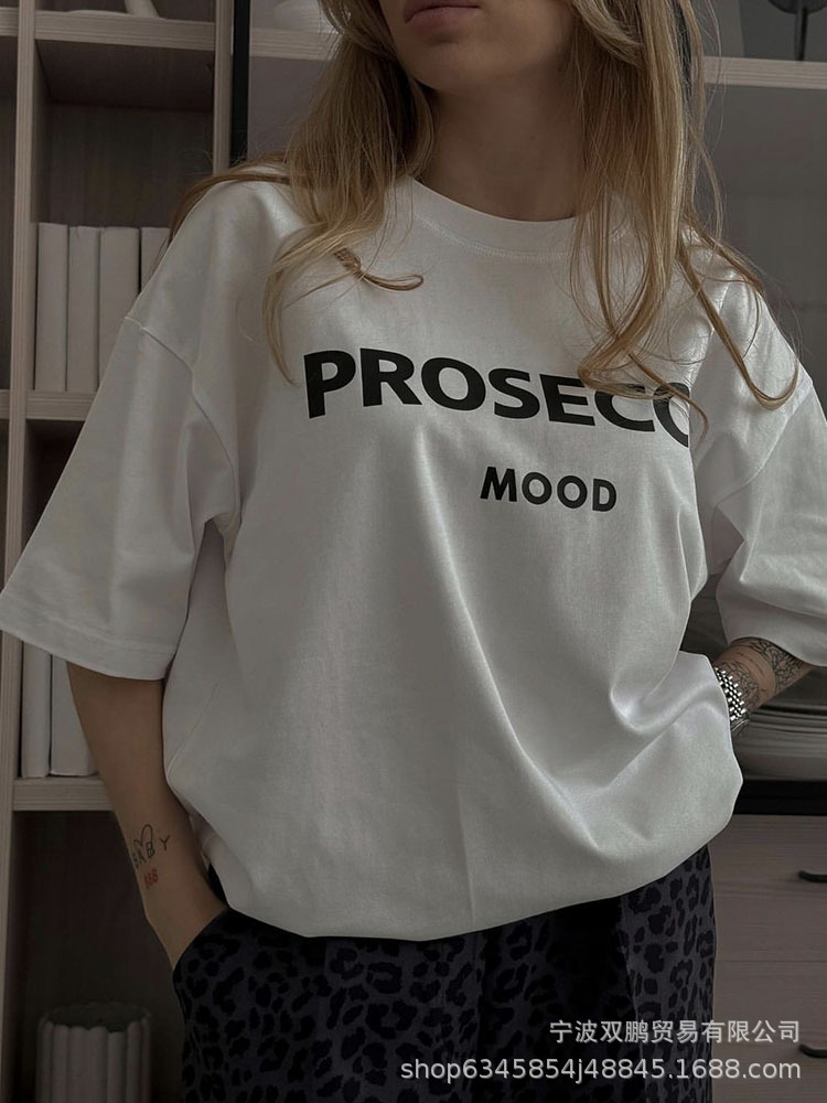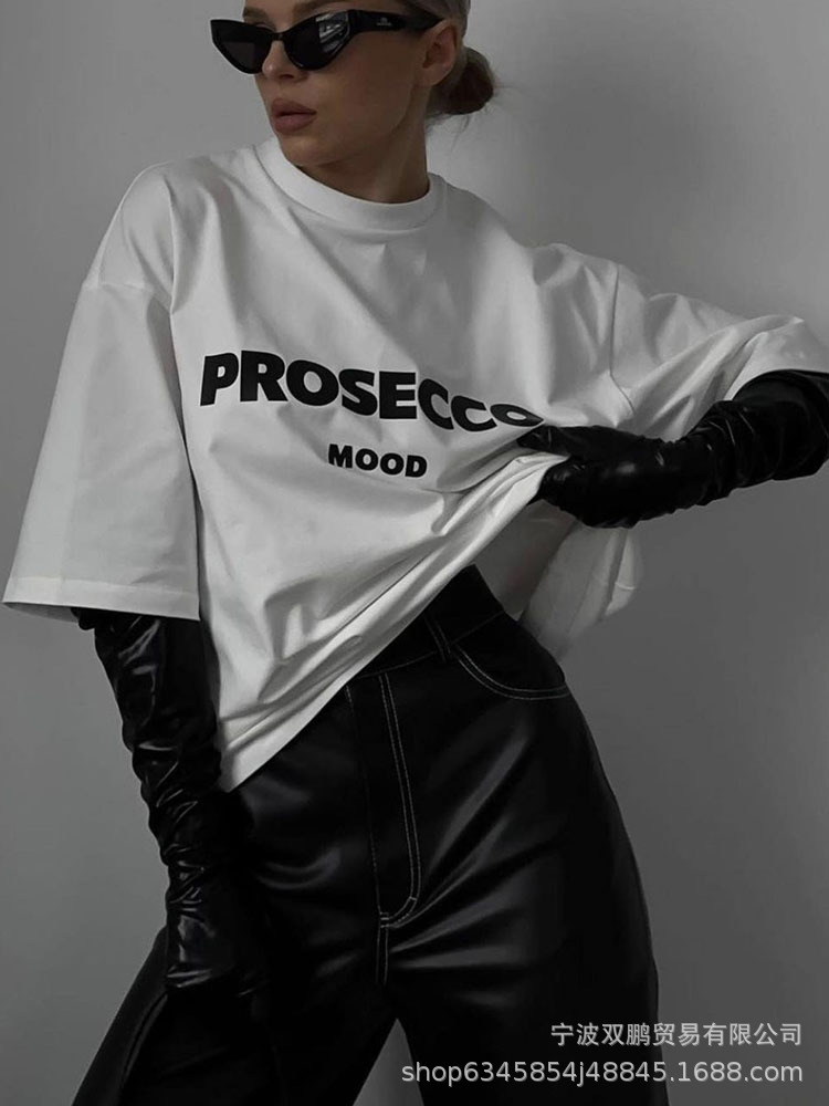 2025 국경 간 뜨거운 판매 미국 편지 인쇄 티셔츠 여성 순수 코튼 라운드 넥 느슨한 반팔 탑 유럽과 미국의 INS 스타일