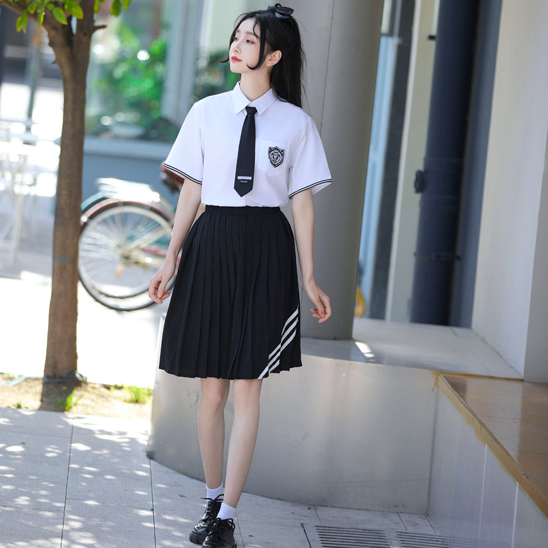 영어 스타일 졸업 수업 원피스 합창 공연 학생 중학생 고등학생 짧은 소매 주름 치마 셔츠 세트스토어 가기