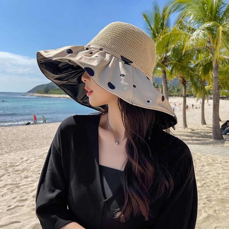 여름 여성 빈 탑 컬러 접착제 태양 모자 한국 스타일 보관 안티 UV 모자 새로운 스타일 대형 브림 패션 선스크린 모자스토어 가기
