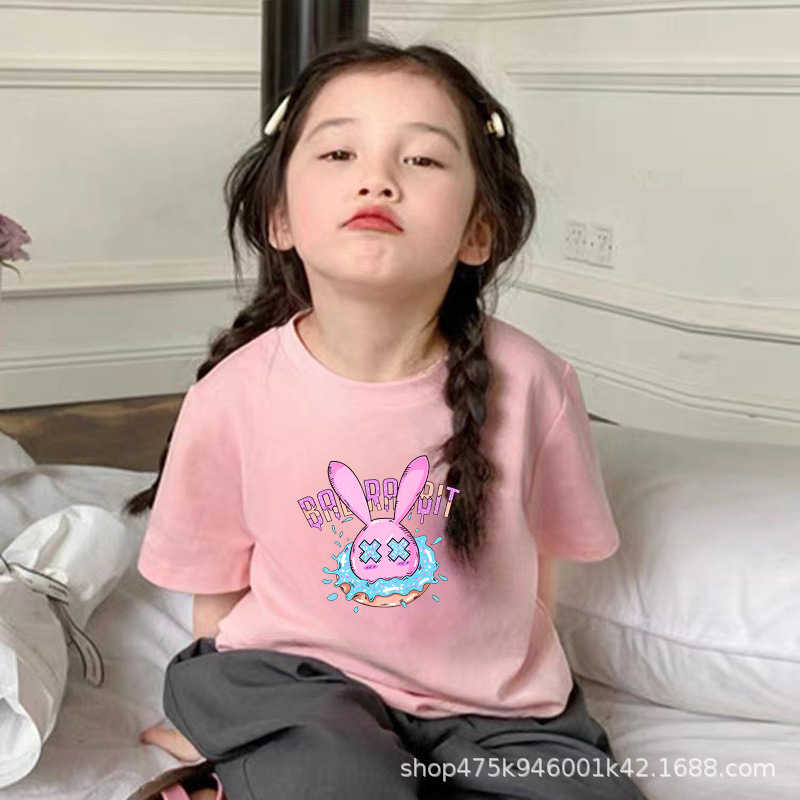 도매 국경 소녀 만화 티셔츠 여름 2024 새로운 스타일 어린이 반팔 탑 소녀면 티셔츠스토어 가기