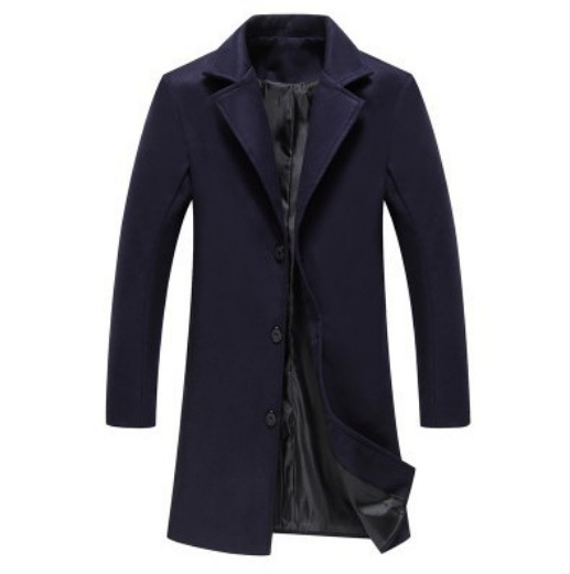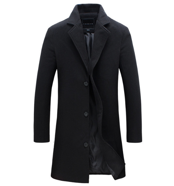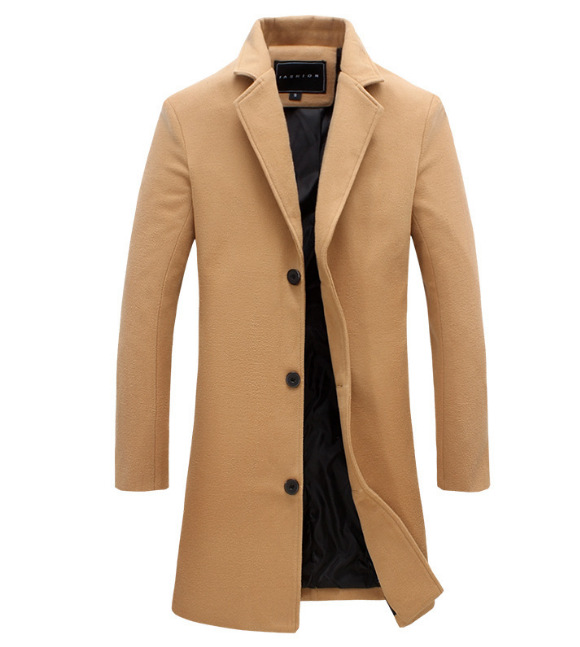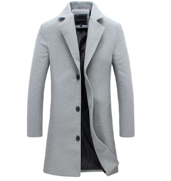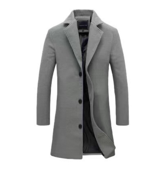 AliExpress 2023 대외 무역 남성 긴 단색 단일 브레스트 윈드 브레이커 유럽과 미국 대형 캐주얼 모직 코트 도매