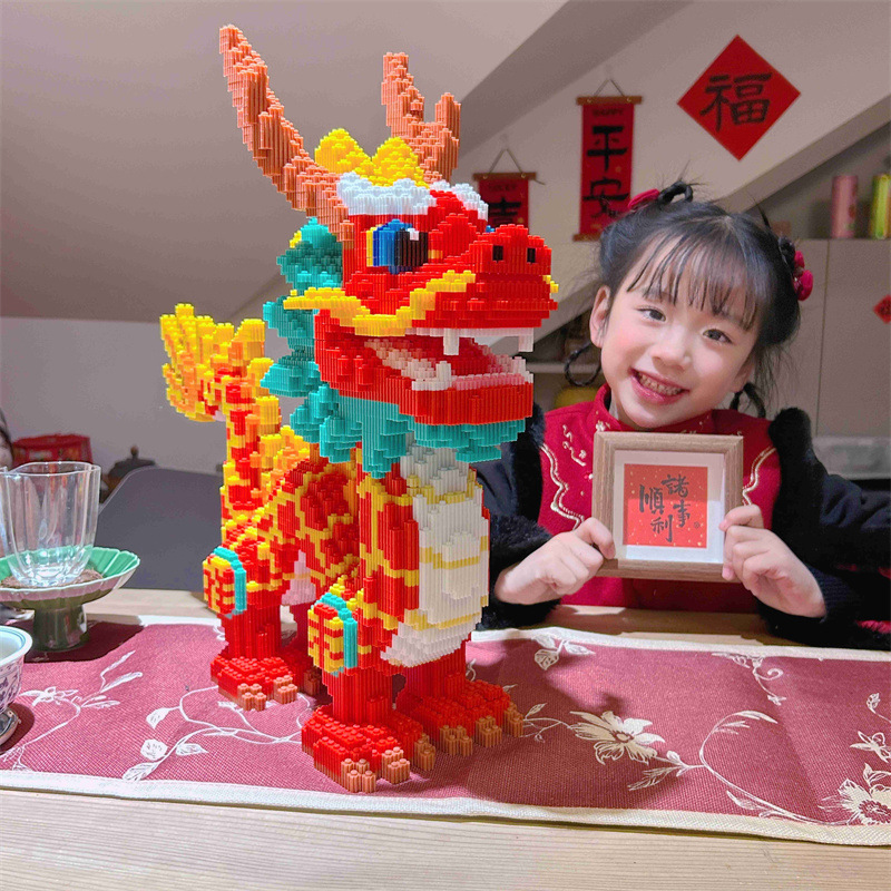국가 조수 스타일 중국 용 대형 퍼즐 빌딩 블록 기린 드래곤 보이 퍼즐 장식품 난이도 선물 풀롱 장난감스토어 가기