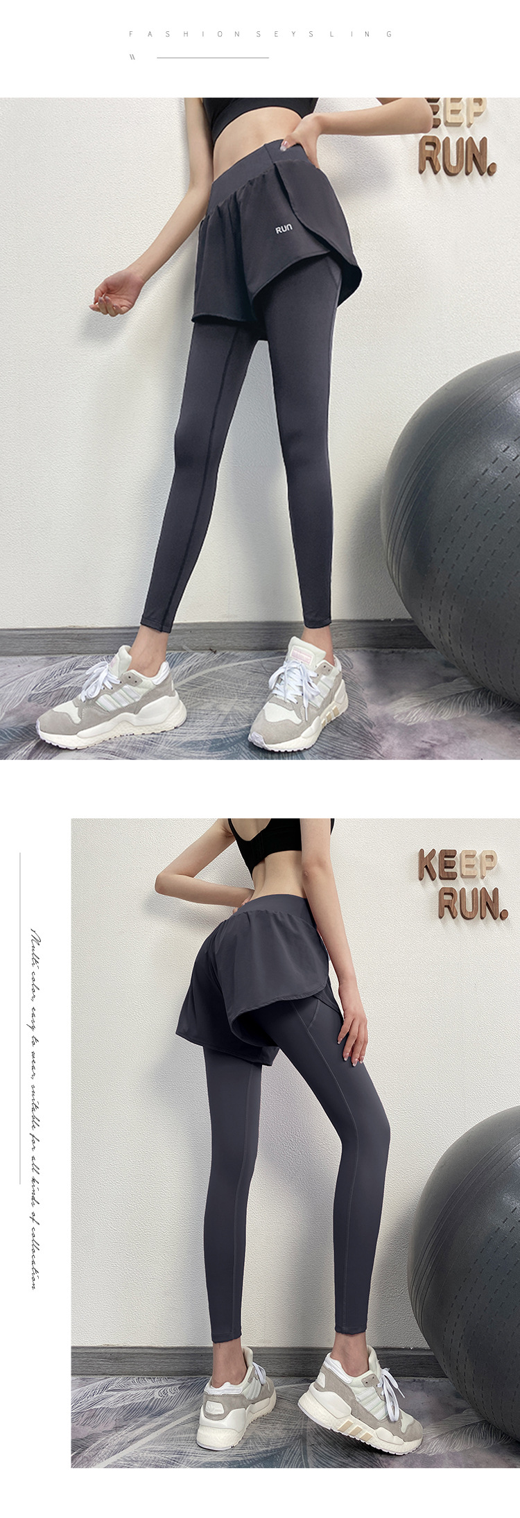 가짜 투피스 피트니스 바지 여성용 꽉 끼는 높은 허리 달리기 빠른 건조 요가 바지 여성용 안티 라이트 고탄성 스포츠 바지 여성용 외부 착용스토어 가기