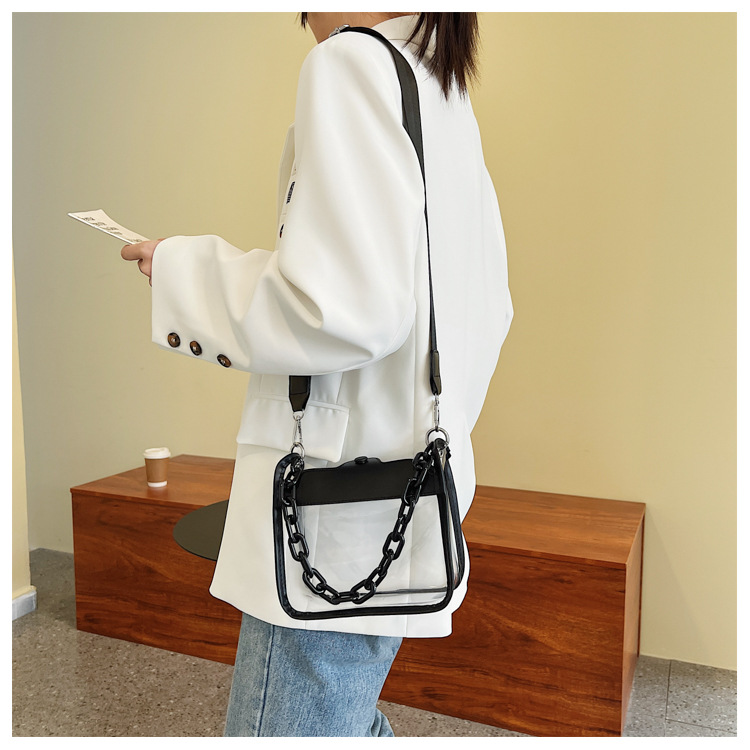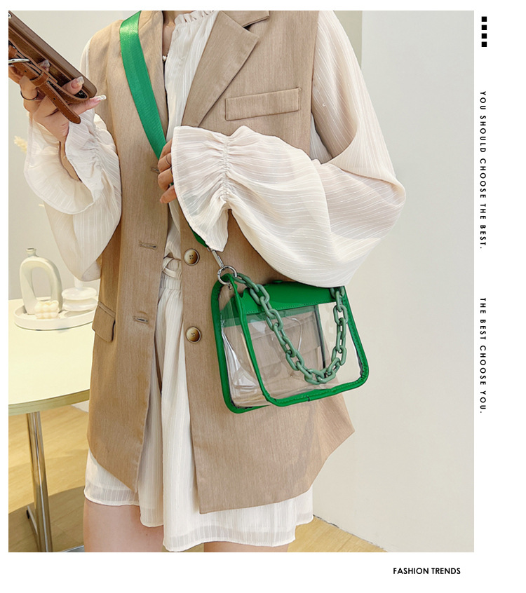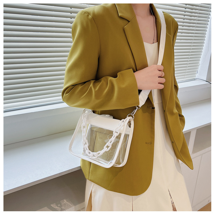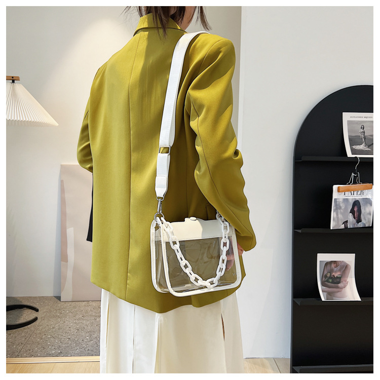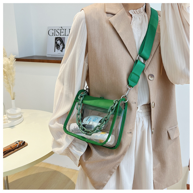 젤리 가방 투명 가방 숙녀 메신저 가방 새로운 PVC 방수 도매 패션 미니 휴대 전화 가방 2024 체인