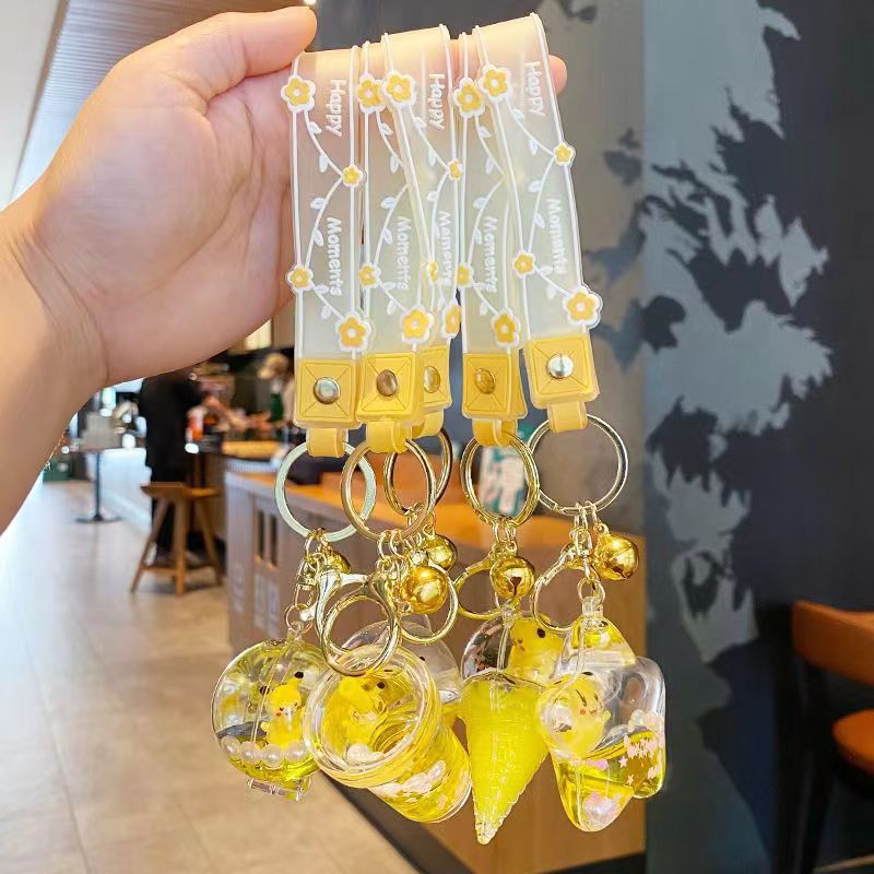 악수 사운드 인터넷 레드 크리스탈 플로팅 병 키 체인 소녀의 심장 귀여운 오일 펜던트 펜던트 창조적 인 자동차 키 체인스토어 가기