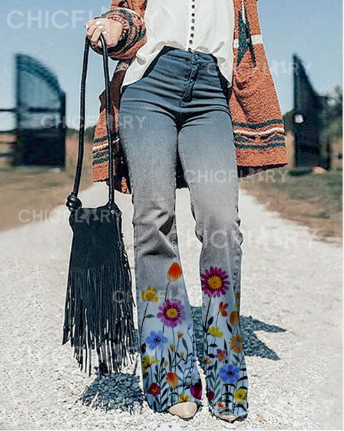 3D 260g Twill 2022 여성 청바지 국경 소원 여성 공작 패턴 캐주얼 바지 바지스토어 가기