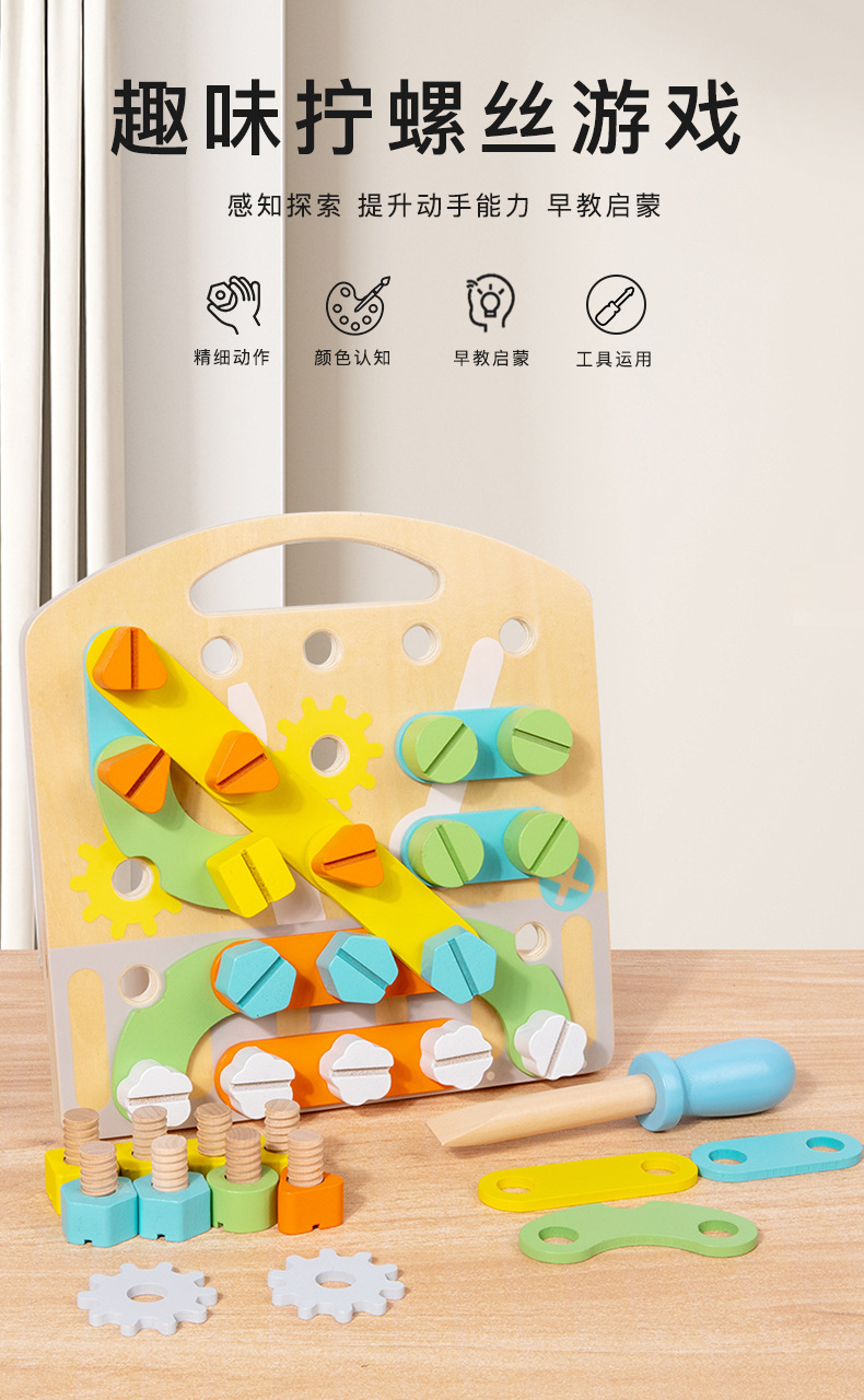 나무 어린이 장난감 너트 조립 조기 교육 교구 원목 남녀 아기 부모-자녀 상호작용 나사스토어 가기