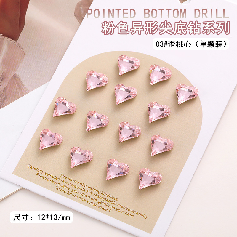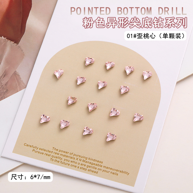 • 01 천연 핑크 크리스탈 [작은 비뚤어진 심장 6*7MM]]