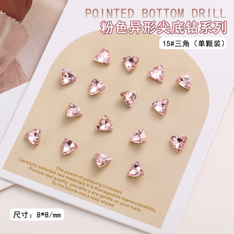 • 15 자연 핑크 크리스탈 "삼각형 8MM]