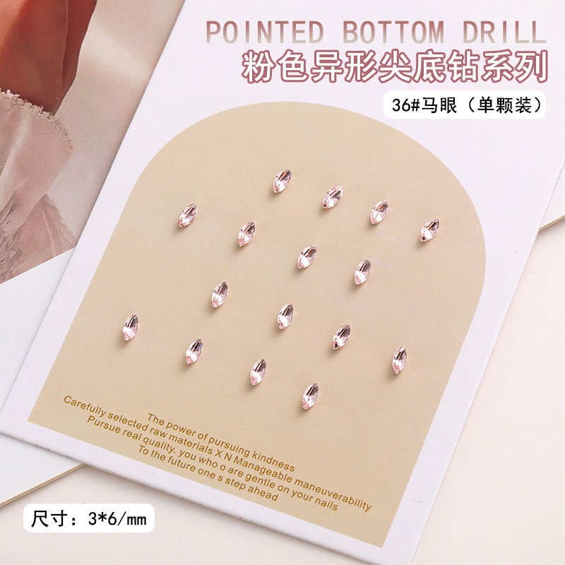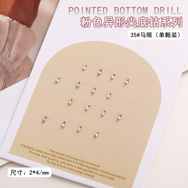 • 35 천연 핑크 크리스탈 "미니 조랑말 눈 2*4MM]