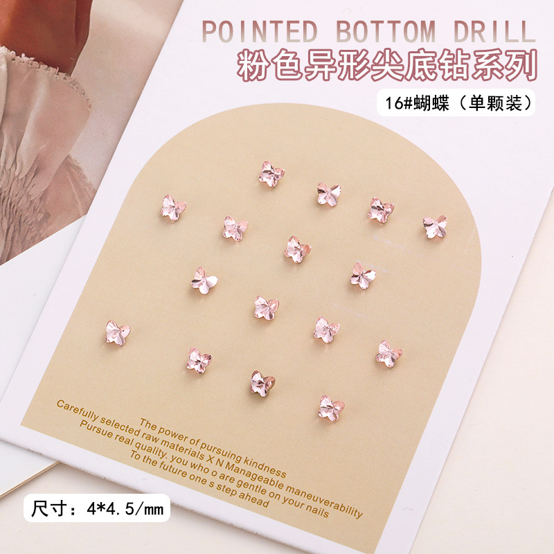 • 16 천연 핑크 크리스탈 "작은 나비 4.5MM]