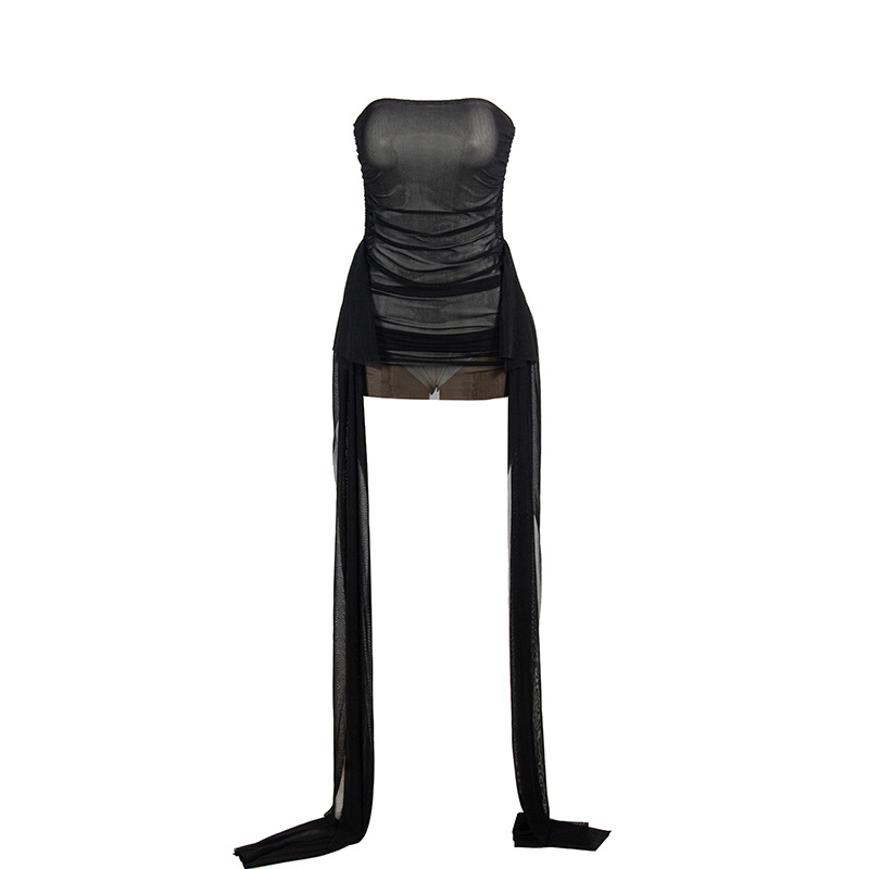 A426BS 유럽과 미국의 대외 무역 2024 여름 새로운 단색 민소매 튜브 탑 리본 짧은 슬림 섹시한 드레스스토어 가기