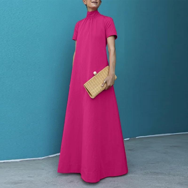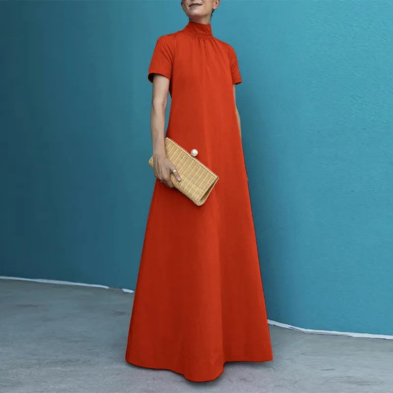 2024 크로스 국경 여성의 여름 우아한 캐주얼 느슨한 짧은 소매 슈퍼 긴 원피스 조끼 원피스 가운