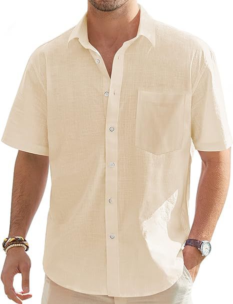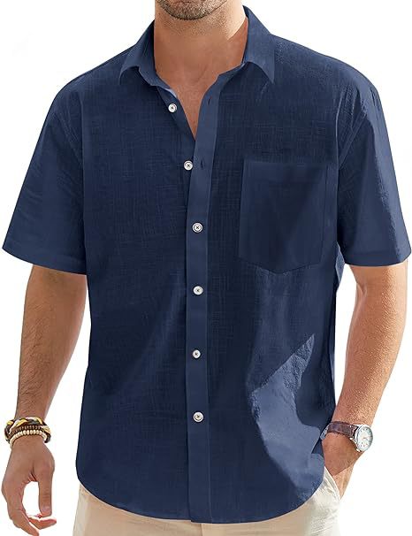 2024 Amazon AliExpress 남성용 여름면 및 린넨 짧은 소매 카디건 캐주얼 버튼 비치 휴가 루즈 셔츠스토어 가기