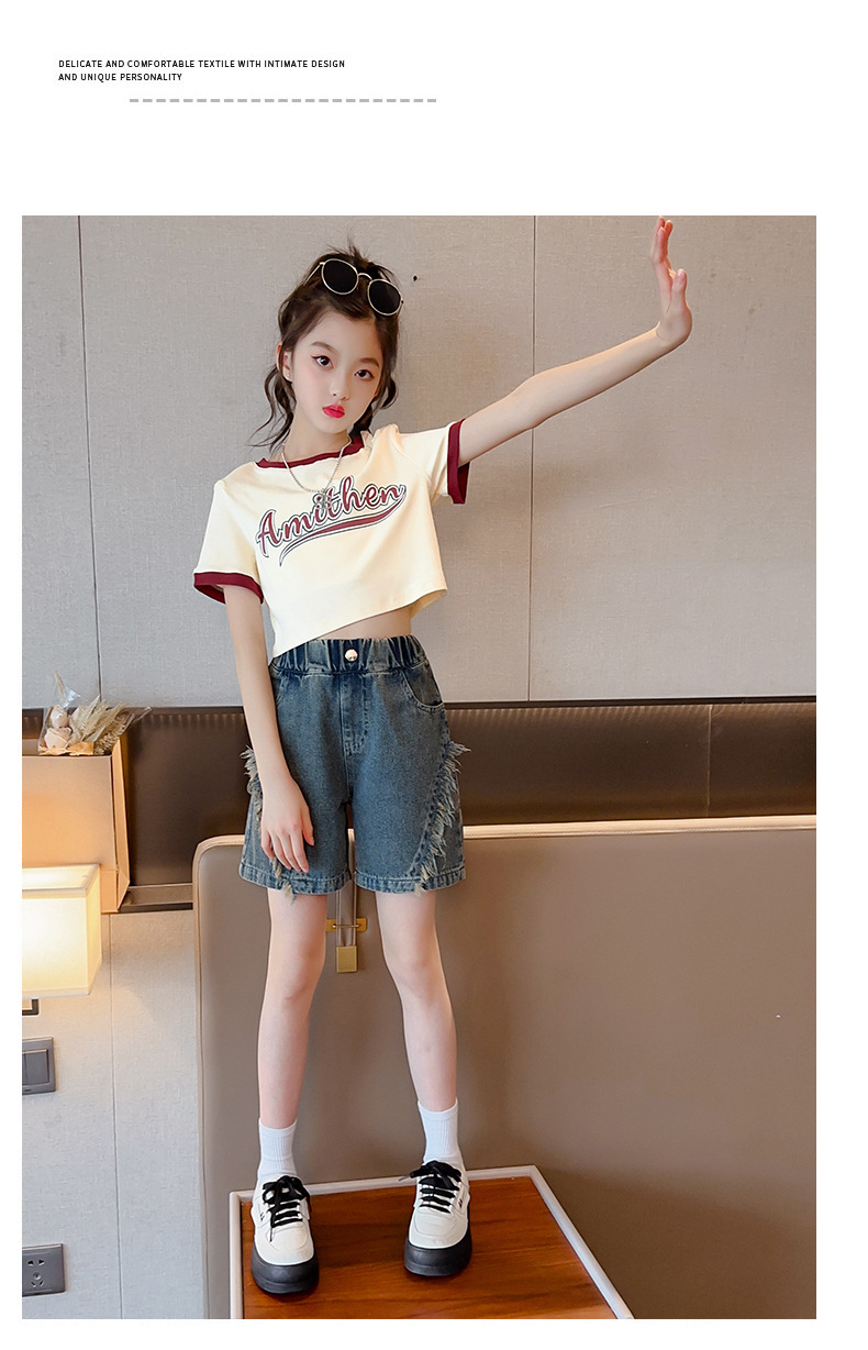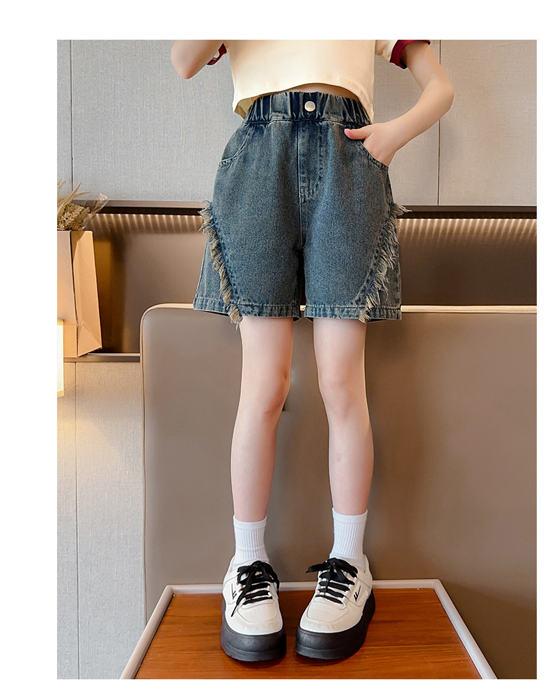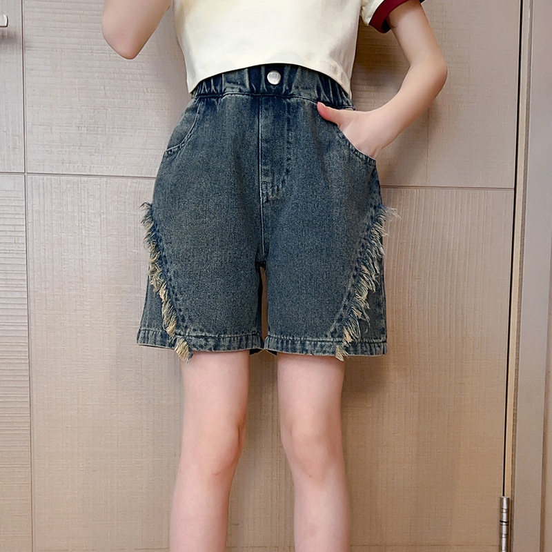 소녀 데님 반바지 외복 여름 2024 새로운 어린이 서양식 5 점 바지 서양식 대형 어린이 얇은스토어 가기