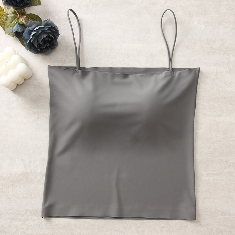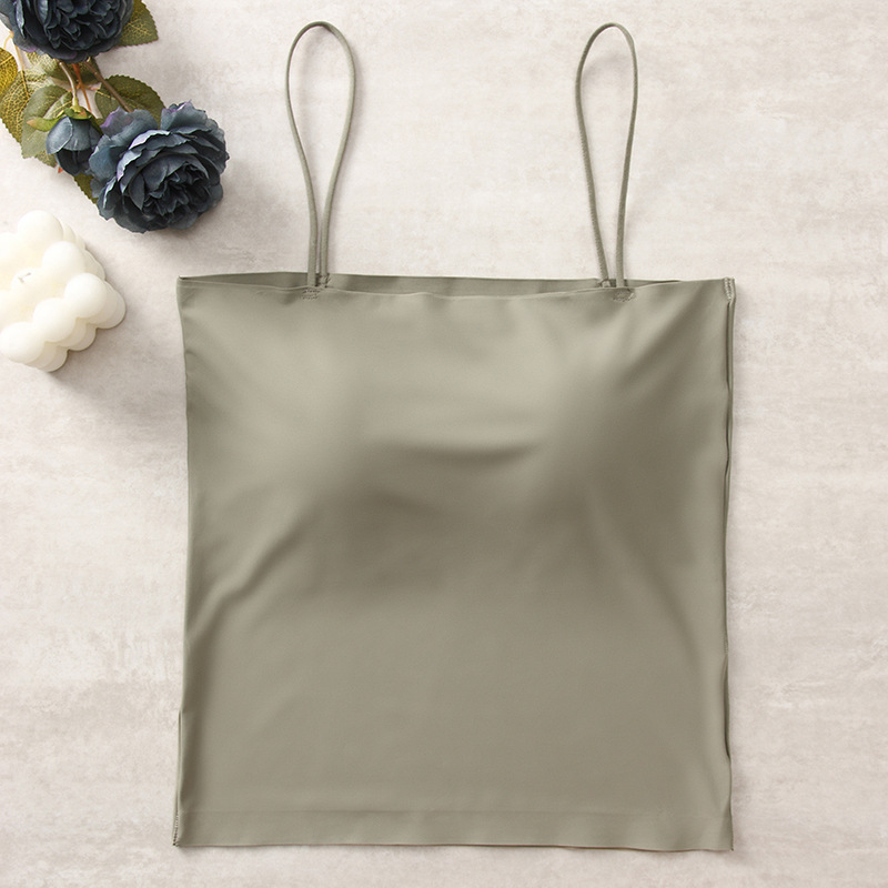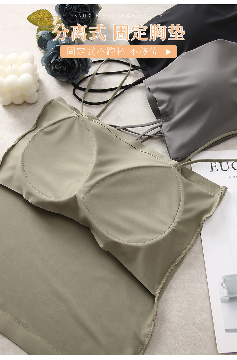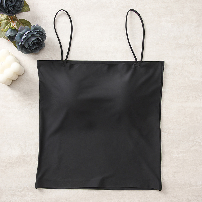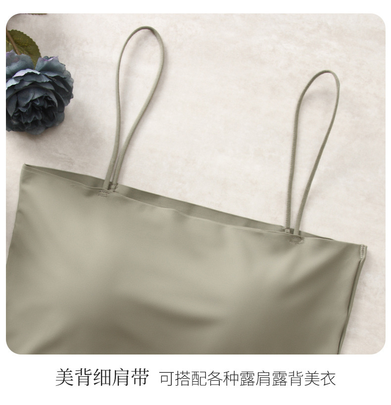 아이스 실크 아름다운 백 카미 솔 여자 조끼 가슴 패드 고정 컵 내부 착용 스피스 걸스 여름 스트랩리스 카미 솔 조끼 여자