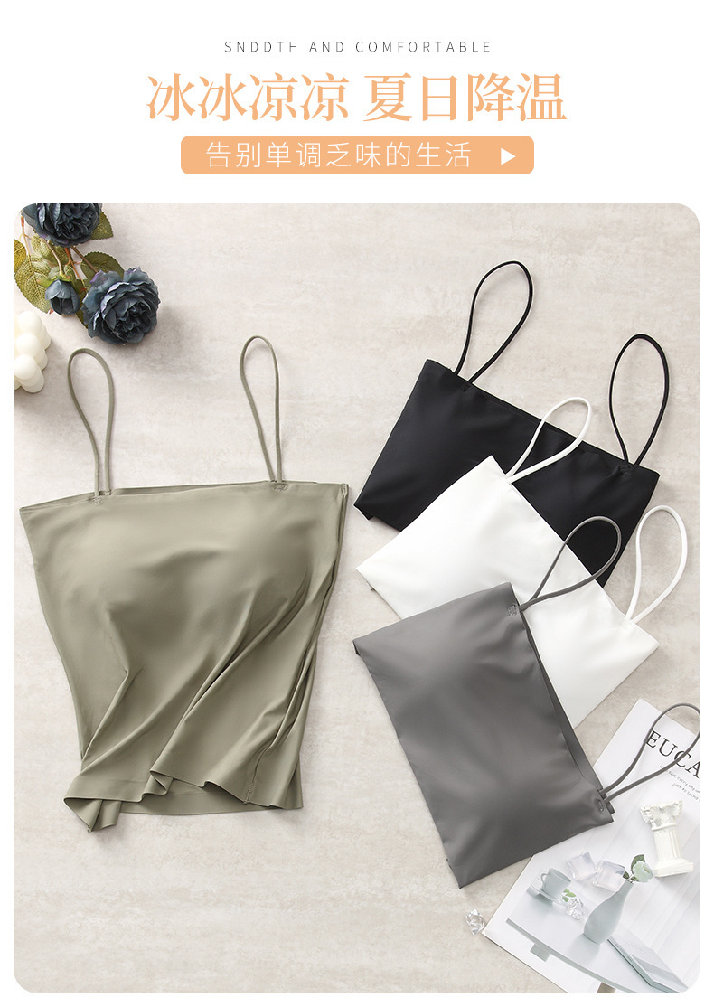 아이스 실크 아름다운 백 카미 솔 여자 조끼 가슴 패드 고정 컵 내부 착용 스피스 걸스 여름 스트랩리스 카미 솔 조끼 여자스토어 가기