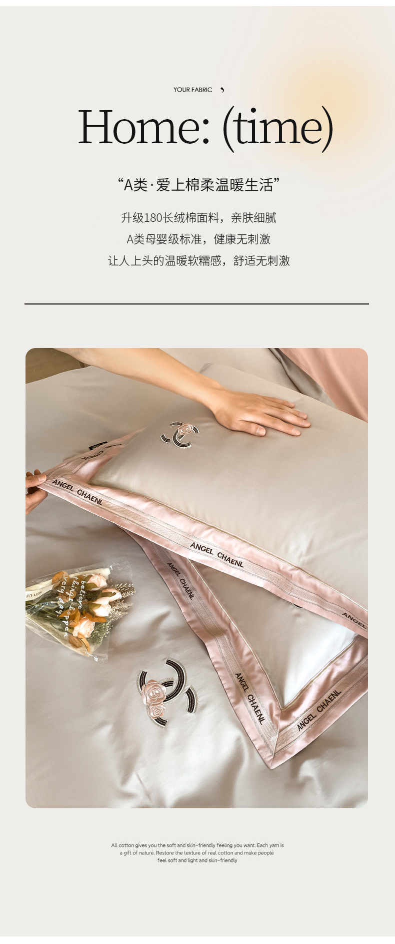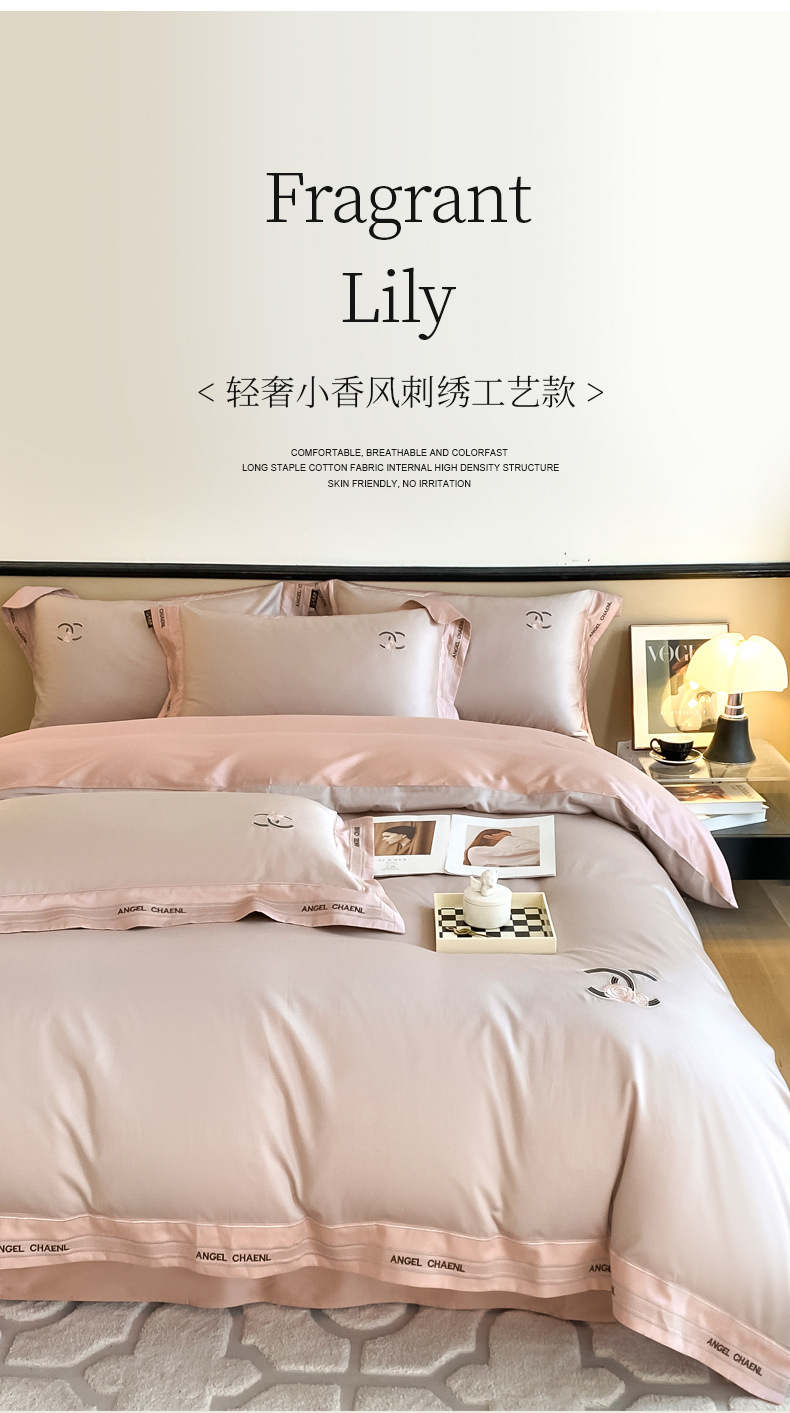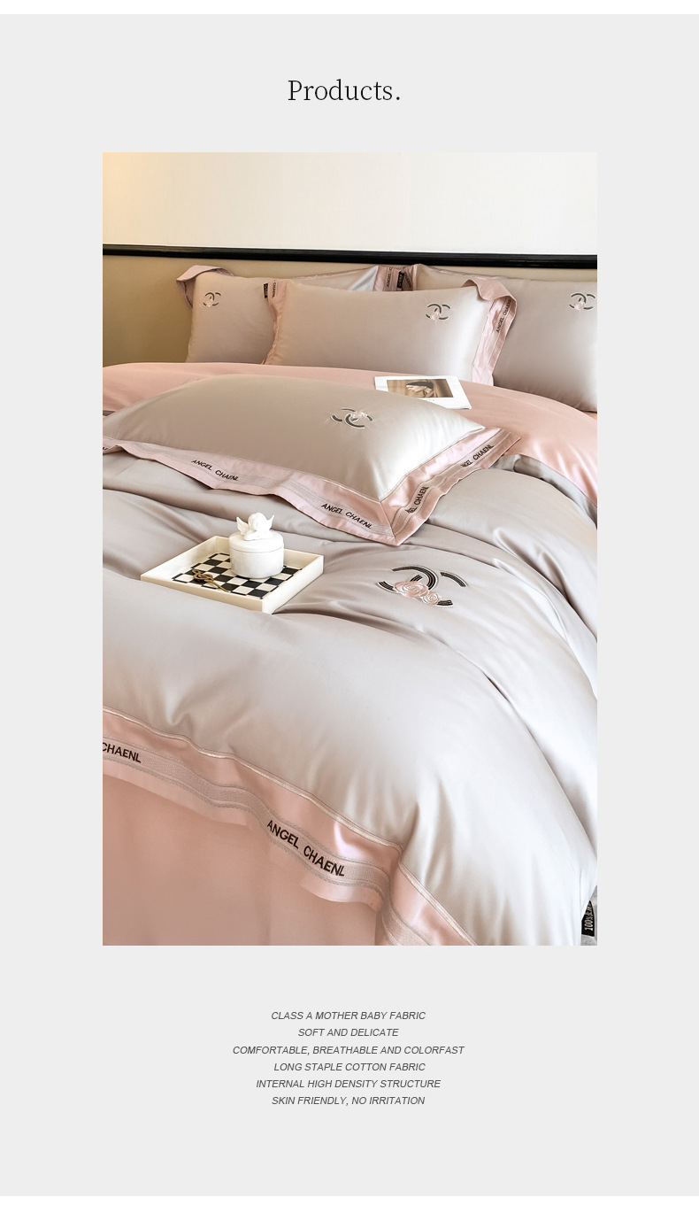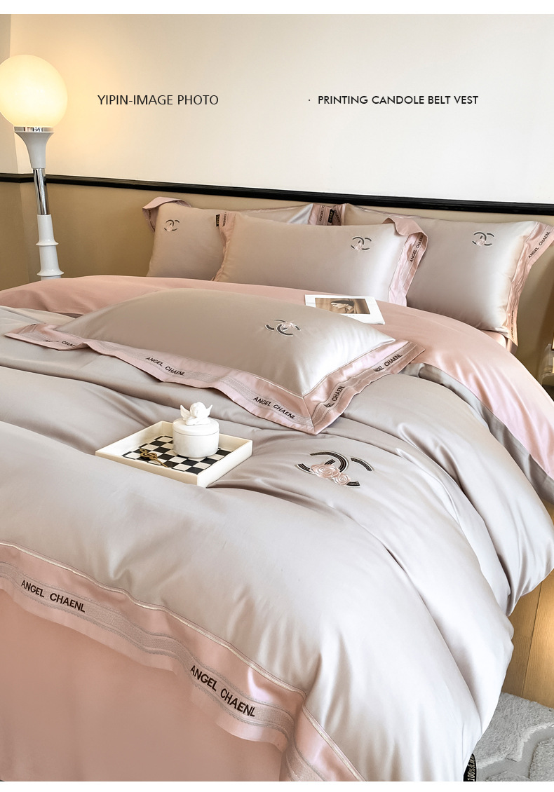 고급스러운 느낌의 신장산 장섬유 순면 4종 세트, 자수 이불커버, 순면 침대 시트, 매트리스 커버, 침구스토어 가기