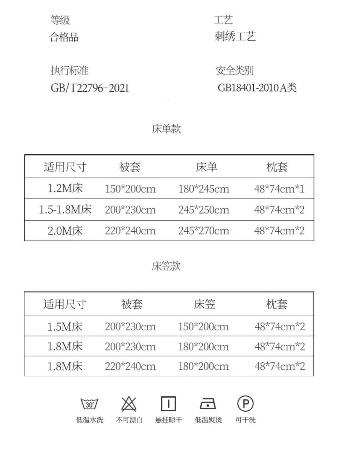 • 1.8m 침대 모자 4 피스 세트 [이불 커버 200*230cm]]