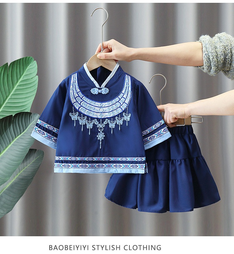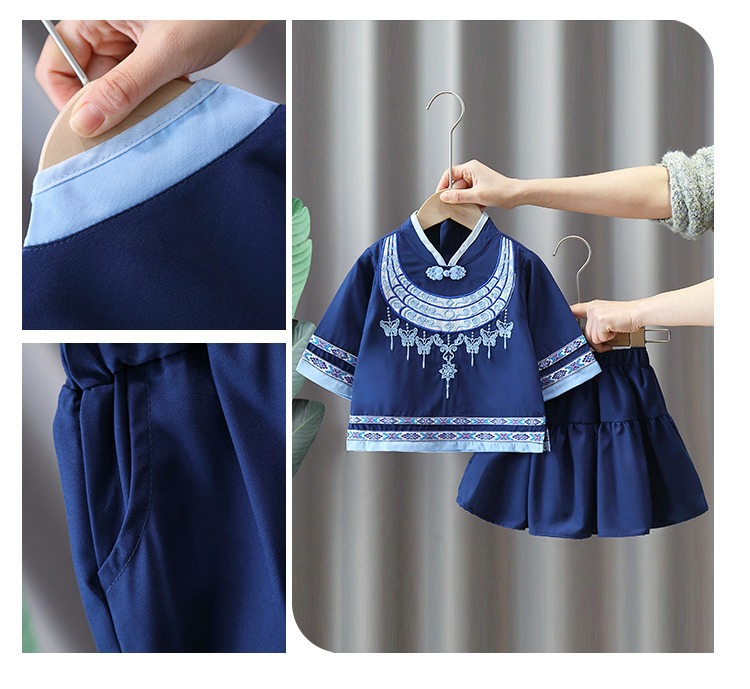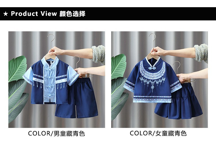 남학생 Zhuang 세트 여학생 여름 민족 세트 초등학생 여름 수업 세트 6 일 코러스 공연 세트 투피스 세트스토어 가기