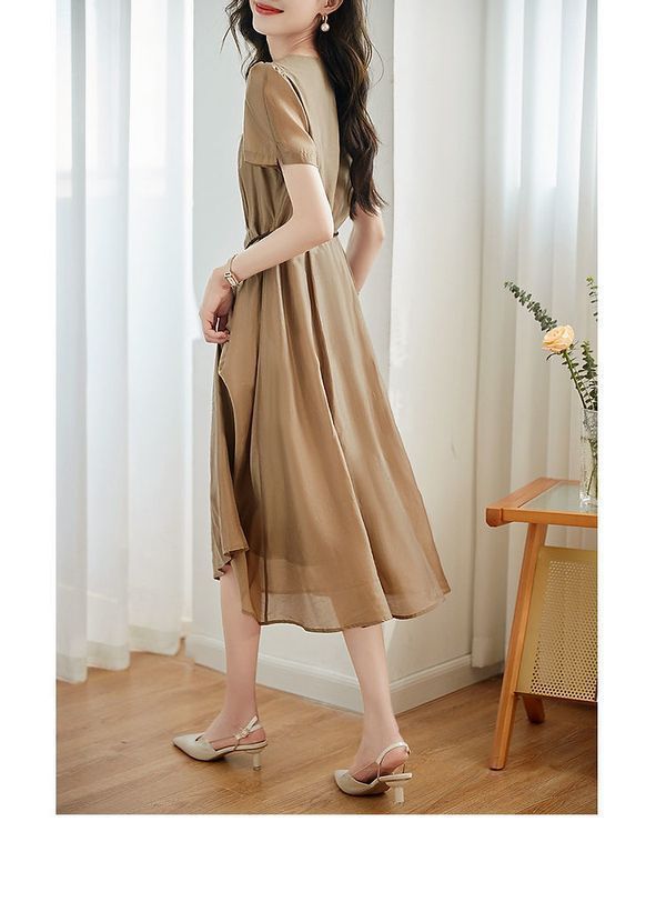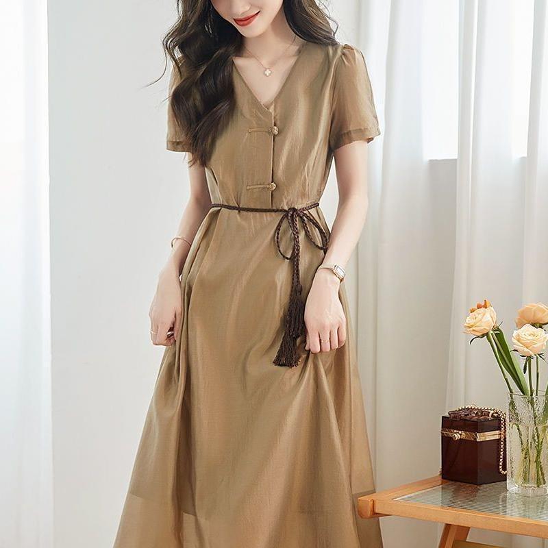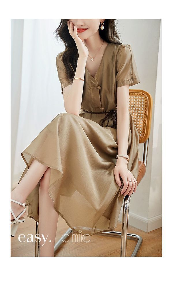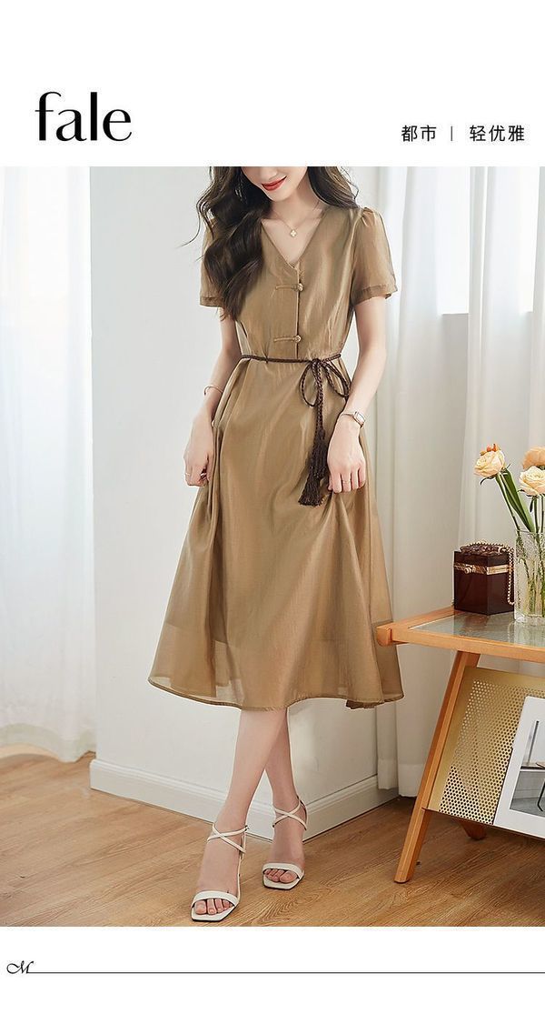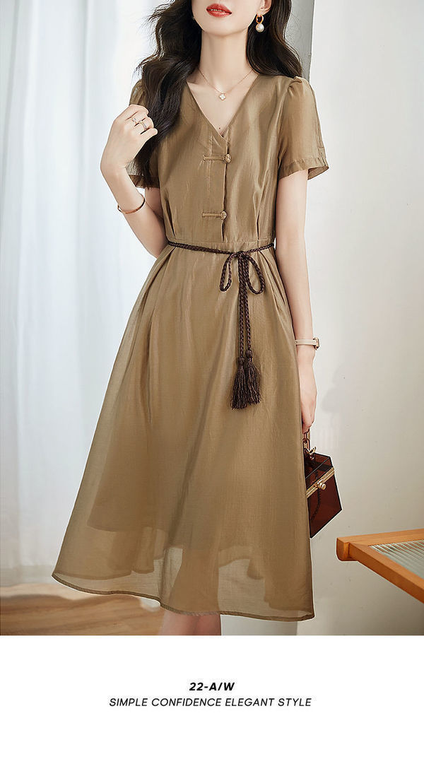 2024 여름 새로운 간단한 통근 스타일 창조적 인 벨트 타이트 허리 슬리밍 우아한 원피스 짠
