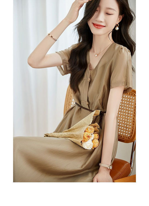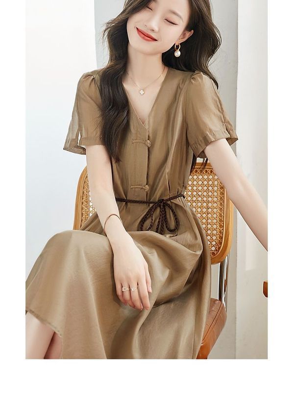 2024 여름 새로운 간단한 통근 스타일 창조적 인 벨트 타이트 허리 슬리밍 우아한 원피스 짠스토어 가기
