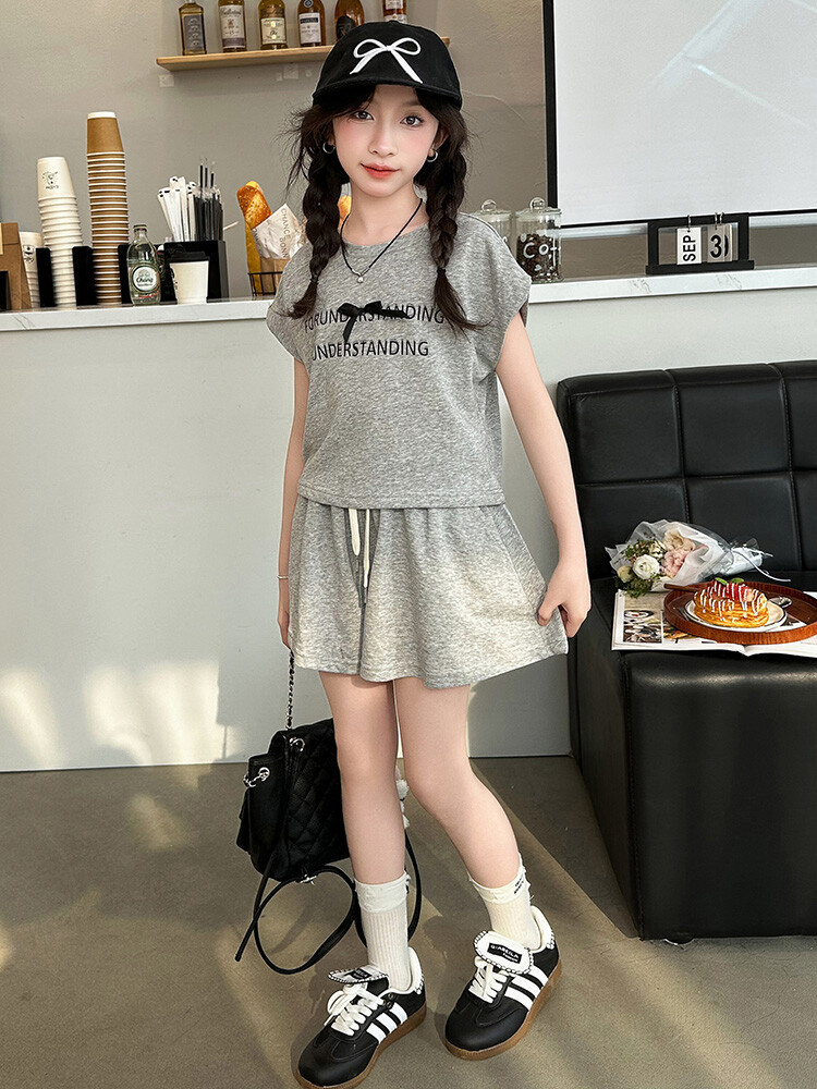 여자 여름 세트 2023 새로운 스타일 유행 캐주얼 반팔 어린이 서양식 스포츠 반바지