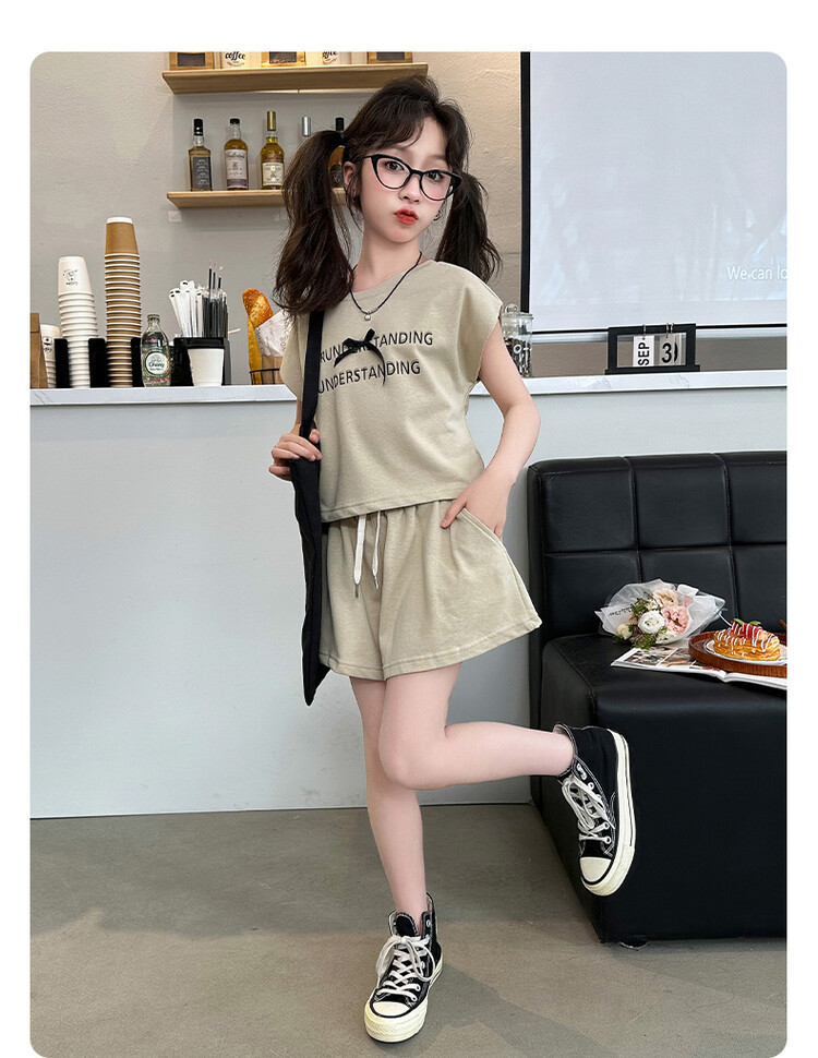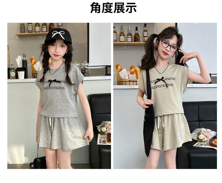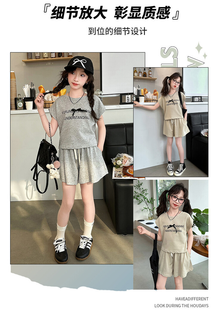 여자 여름 세트 2023 새로운 스타일 유행 캐주얼 반팔 어린이 서양식 스포츠 반바지스토어 가기