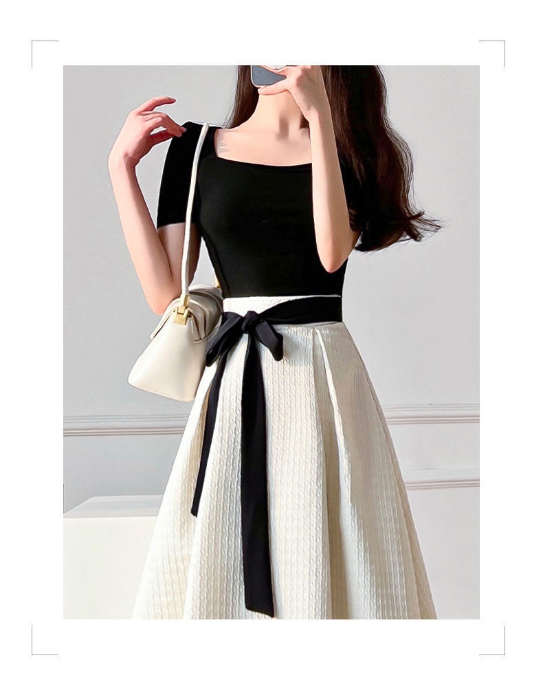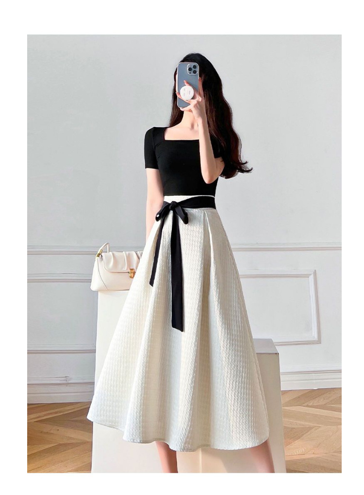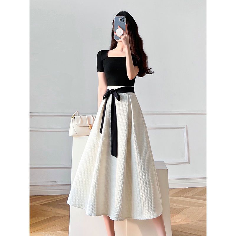 세트 여성의 2024 여름 새로운 슬림 핏 슬리밍 우아한 타이트 허리 작은 샤넬 스타일 스커트 투피스 원피스