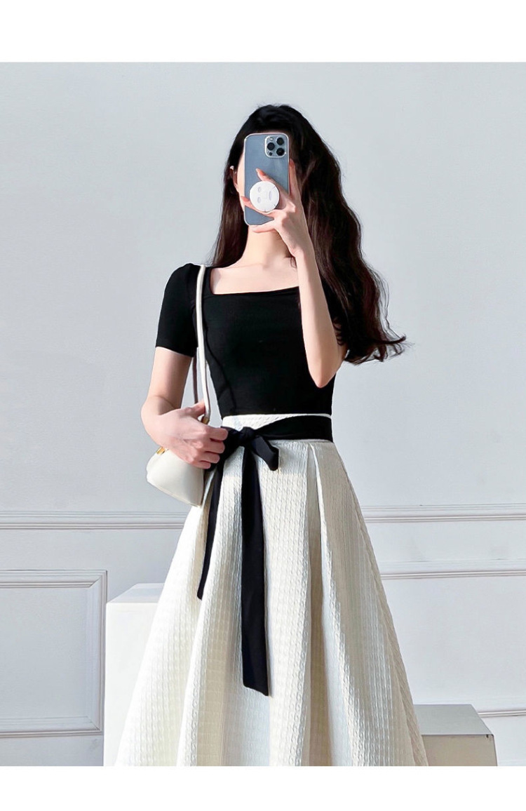 세트 여성의 2024 여름 새로운 슬림 핏 슬리밍 우아한 타이트 허리 작은 샤넬 스타일 스커트 투피스 원피스스토어 가기
