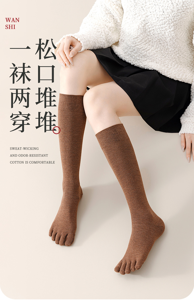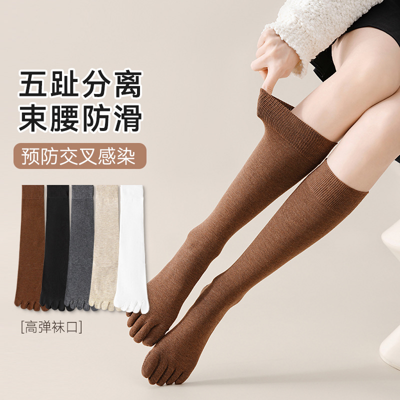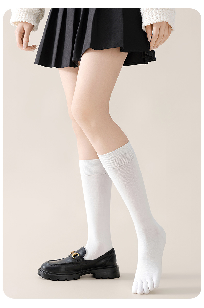 다섯 손가락 종아리 양말 여성의 압력 슬리밍 높은 봄과 가을면 높은 양말 JK 땀 흡수성 발가락 항균 긴 양말