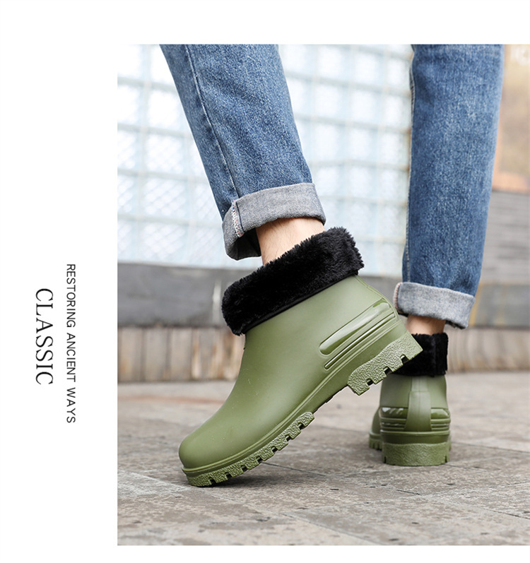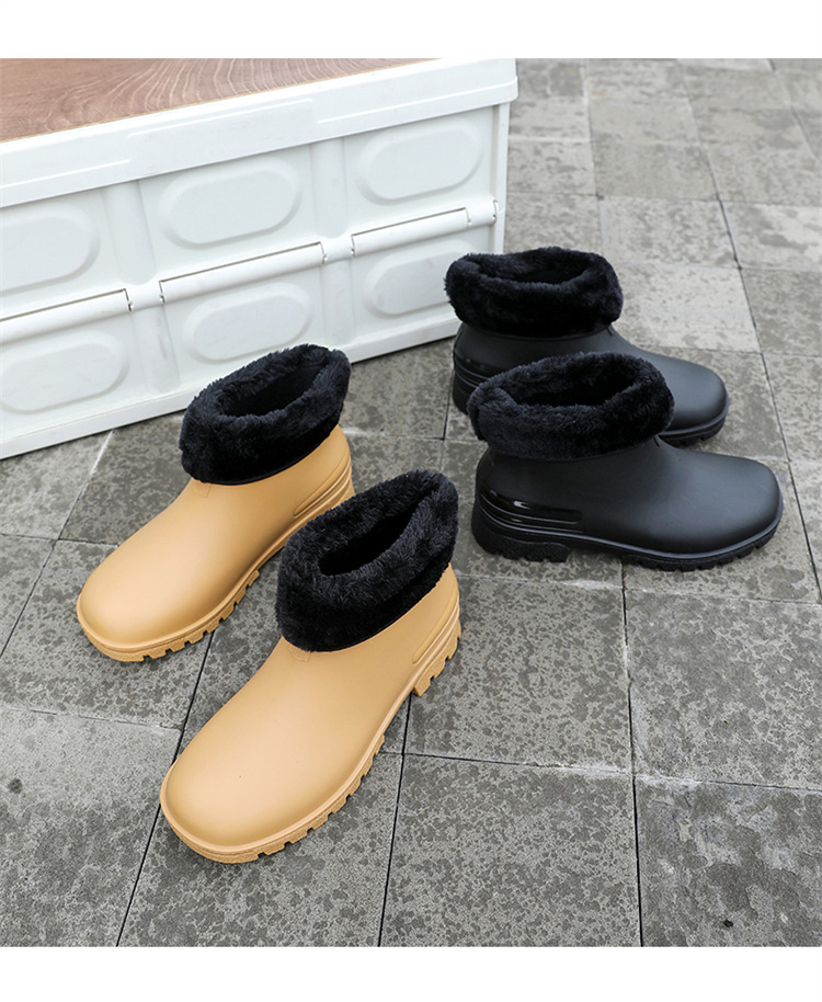 비 부츠 유행 남성과 여성의 짧은 부츠 방수 미끄럼 방지 두꺼운 내마모성 수화 기모 면화 주방 세차스토어 가기